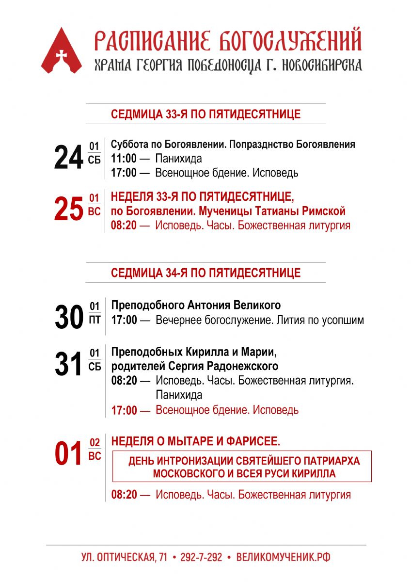 19 января в Георгиевском храме раздавали Святую воду до 21:00. Раздача воды происходила на улице из морозной купели, разливали Агиасму прихожане, добровольцы и местные жители, а также дети и молодежь. Дважды за день совершались праздничные молебны.