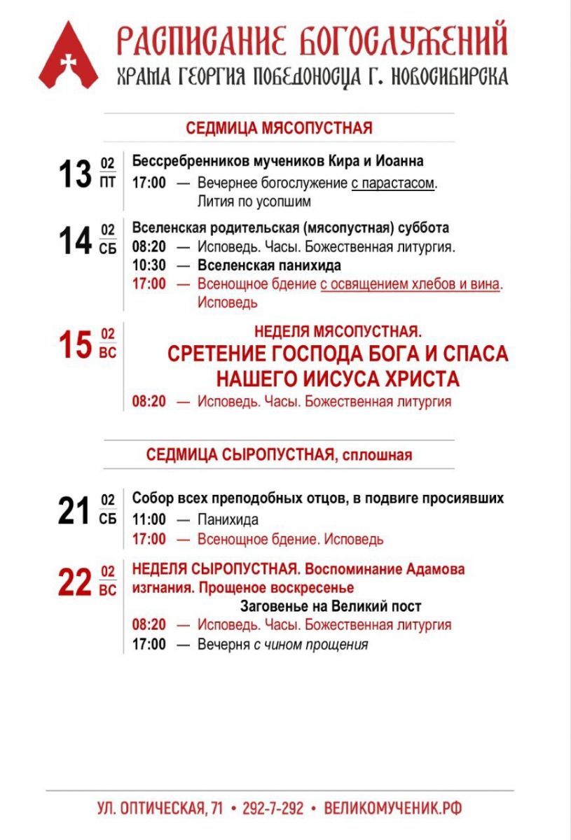 7 февраля, перед вечерним богослужением, в цокольном этаже Георгиевского храма желающие взрослые прихожане приняли участие в приходской олимпиаде. В воскресенье, в день памяти новомучеников, после Божественной литургии состоялось награждение участников.