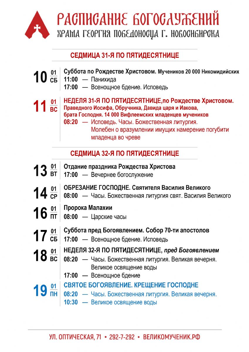 11 января, в день памяти мучеников 14000 младенцев, от Ирода в Вифлееме избиенных, в Георгиевском храме после воскресной Божественной литургии состоялся особый молебен о вразумлении имеющих намерение совершить убиение младенца во утробе (аборт).