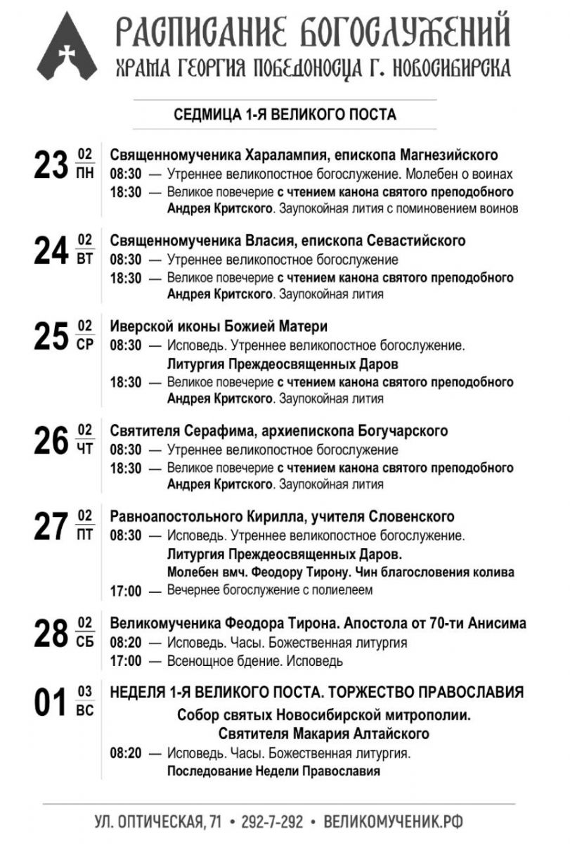 Последнее воскресенье перед Великим постом посвящено церковной памяти воспоминания Адамова изгнания из Рая. Воскресное богослужение состоялось в храме во имя святого великомученика Георгия Победоносца г. Новосибирска.