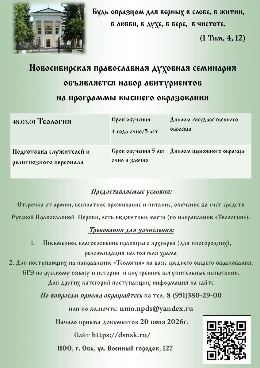 Приглашаем к поступлению в Новосибирскую семинарию