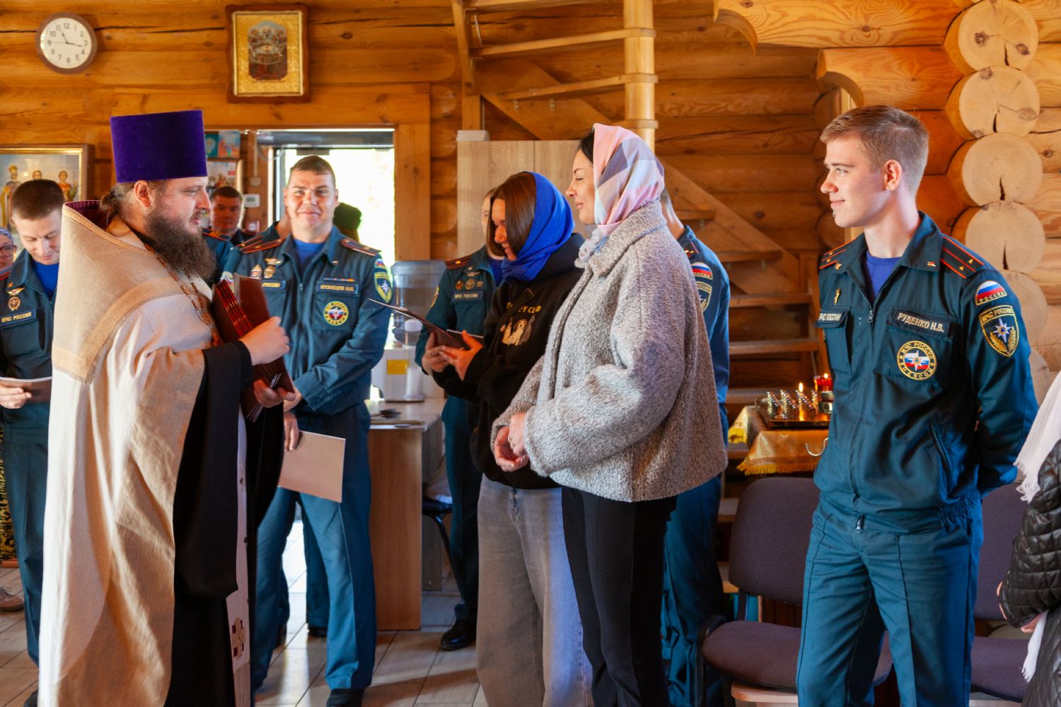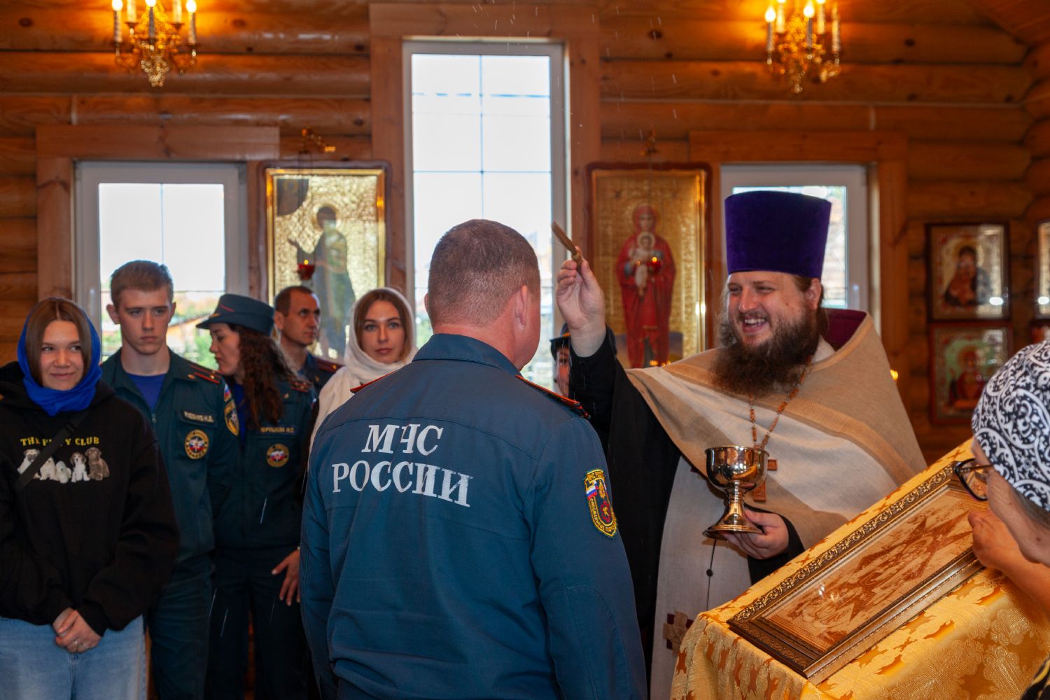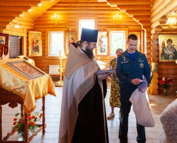 По благословению митрополита Новосибирского и Бердского Никодима в Вознесенском кафедральном соборе и других городских храмах Новосибисркой епархии в этот день были совершены благодарственные молебны для сотрудников МЧС. В Георгиевском храме также состоялся молебен перед иконой Божией Матери «Неопалимая Купина». Отец Александр прочитал молитву о Святой Руси и вместе со спасателями вознёс Господу благодарственные молитвы. Затем каждый сотрудник приложился к праздничной иконе. Приходская праздничная икона уникальна тем, что подарена строителями Георгиевского храма и выполнена в необычной технике выжигания по фанере. Батюшка окропил каждого сотрудника святой водой и призвал Божие благословение на всех молящихся. Завершилась общая молитва многолетием, поздравительной речью настоятеля храма и обменом памятными подарками. Начальник специальных пожарно-спасательной части №1 Геннадий Александрович Лебедев выразил слова благодарности отцу Александру и Георгиевскому храму за молитву в значимых для сотрудников МЧС день и тёплый приём, подарил информационную литературу об управлении и спецчасти, а также сувениры, изготовленные к прошедшему 75-летнему юбилею Управления. Отец Александр в ответ искренне благодарил начальство и сотрудников Управления и спечастей, подарил каждому небольшой образ небесного покровителя храма — святого великомученика Георгия Победоносца г. Новосибирска, приложенный к мощам святого и благословением Святейшего Патриарха. Также каждому гостю был вручён номер православного журнала "Юрьев день", издаваемого Георгиевским Приходом.