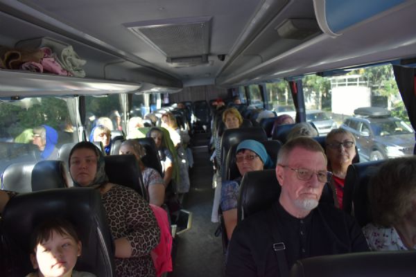 Путешествие на комфортабельном автобусе стало возможным благодаря помощи благотворителей. Свободные в этот день от земных дел и забот верующие смогли принять участие в этой поездке. Из-за кратковременного пребывания мощей и праздничных богослужений Георгиевского Прихода не было в богослужебной череде и наш храм присоединился к материнскому Приходу — храму в честь иконы Божией Матери "Знамение-Абалацкая".