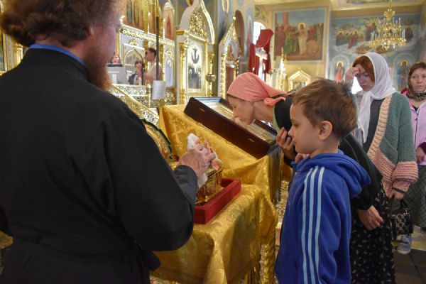 Каждый участник поездки смог приложиться к иконе и ковчегу с мощами, получить на память маленький бумажный образок святителя Тихона. Всего в богослужении от Георгиевского храма приняло участие около 50 человек.