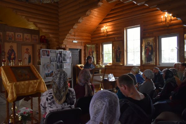 5 октября, после воскресной Божественной литургии в Георгиевском храме г. Новосибирска состоялась просветительская открытая лекция для прихожан, посвящённая столетней годовщине преставления святителя Тихона, патриарха Всероссийского. Лекцию прочитала и приготовила преподаватель Воскресной школы храма во имя святого мученика Вонифатия г. Новосибирска Ирина Ивановна Иванова.