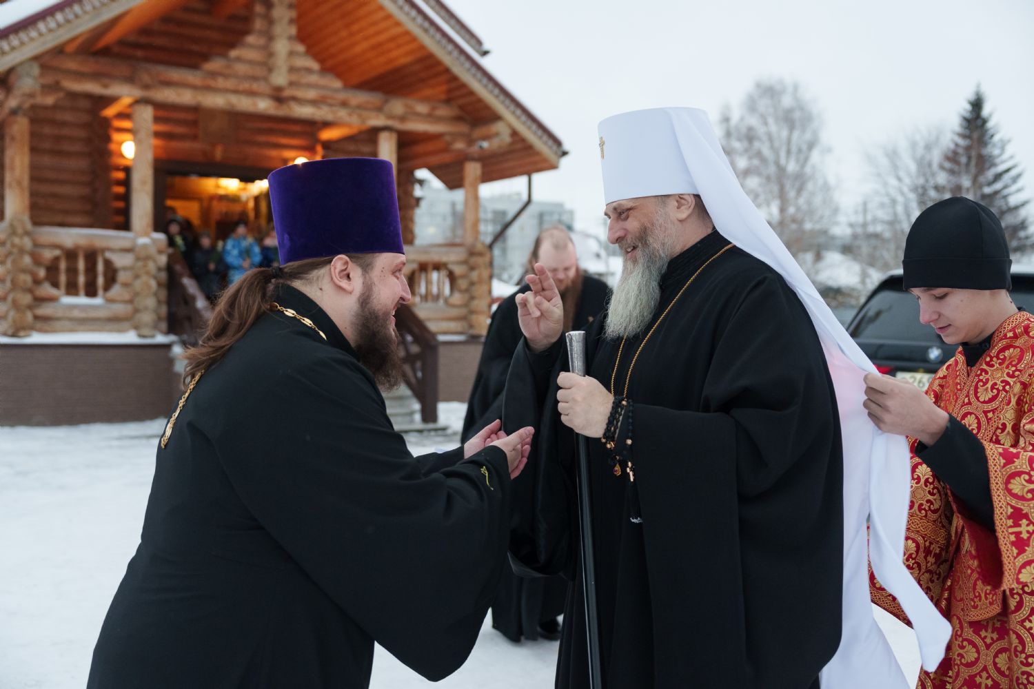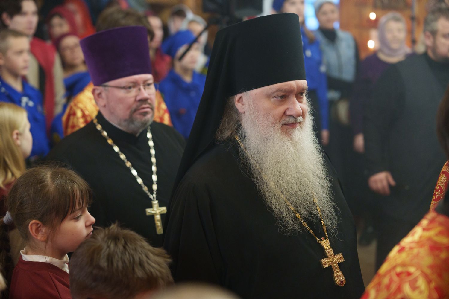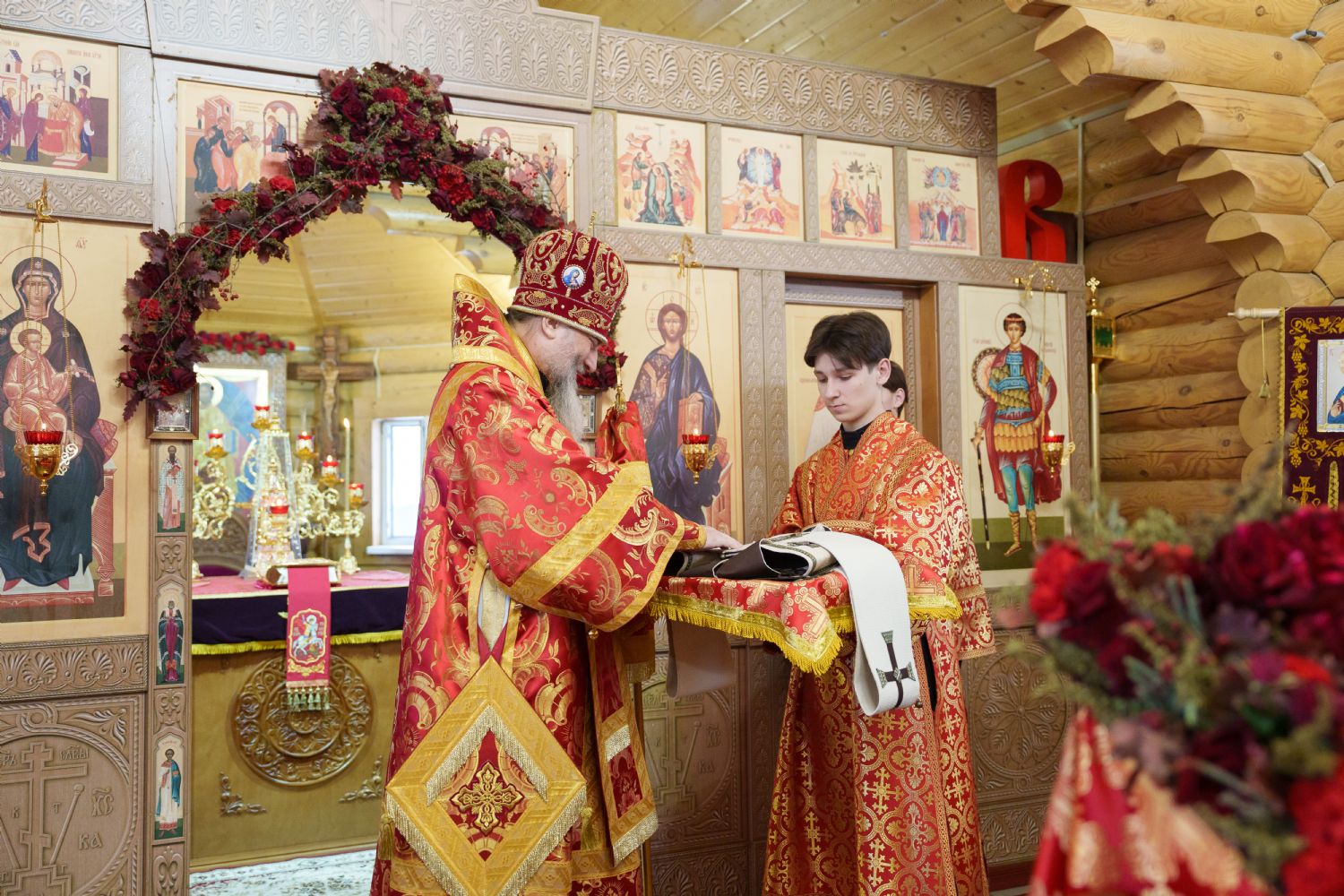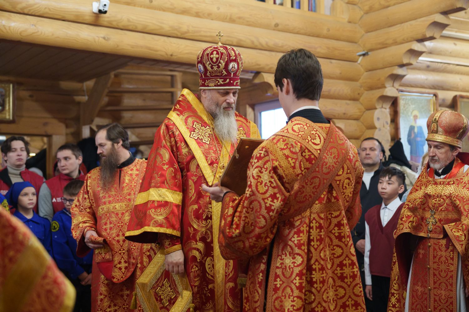 Затем с ответным словом к Владыке обратился настоятель Прихода иерей Александр Сахненко, который от лица Прихода приветствовал митрополита Никодима в построенном его личным попечением святом храме и преподнес Его Высокопреосвященству на долгую молитвенную память малое архиерейское облачение, пошитое с любовью профессионалами церковного швейного мастерства из природных материалов по древним традициям с использованим современных технологий. Особенностью облачения стал вручную сотканный из шерсти ягнёнка малый архиерейский омофор.