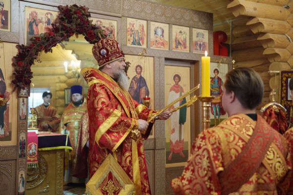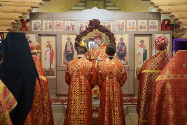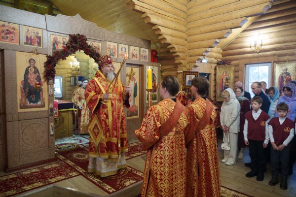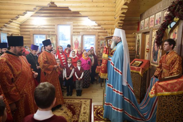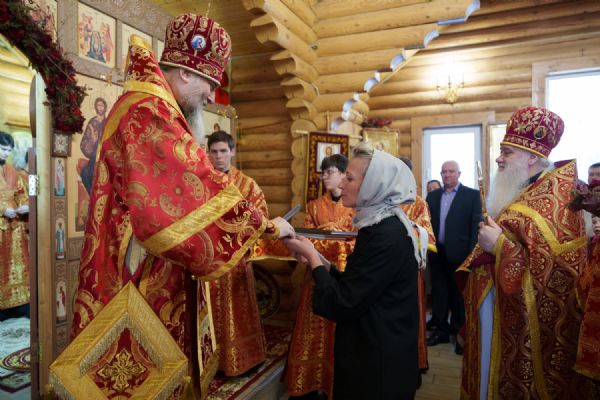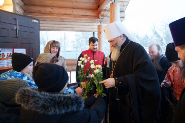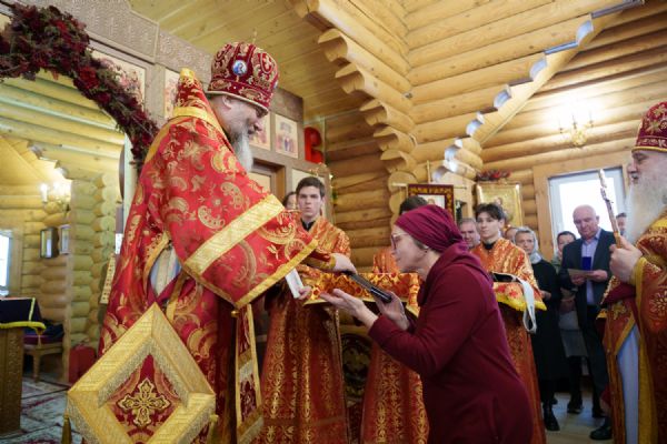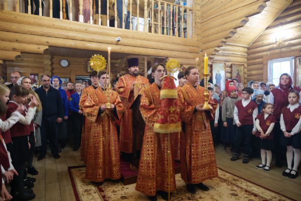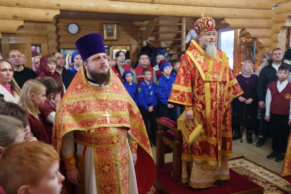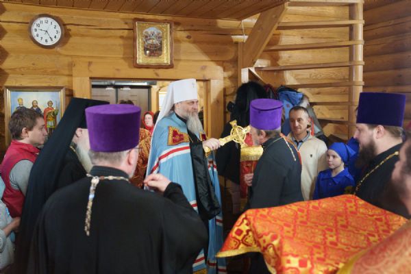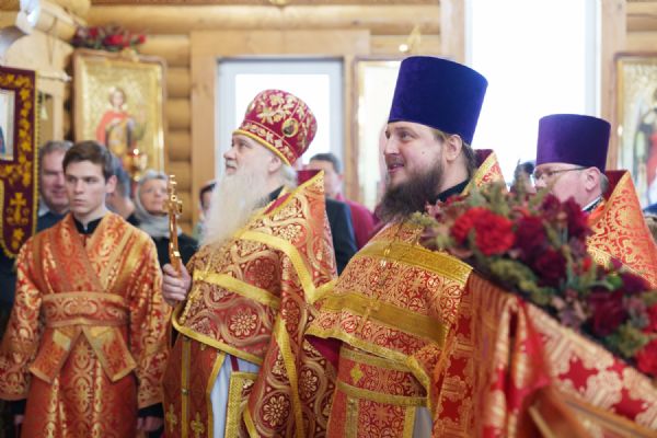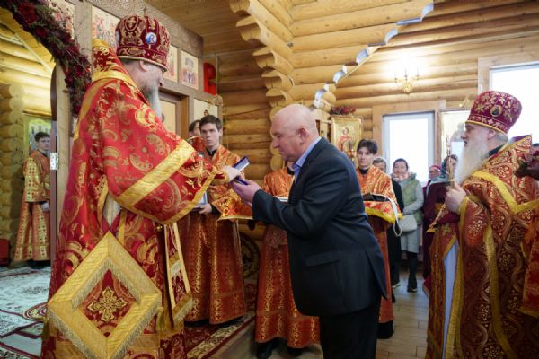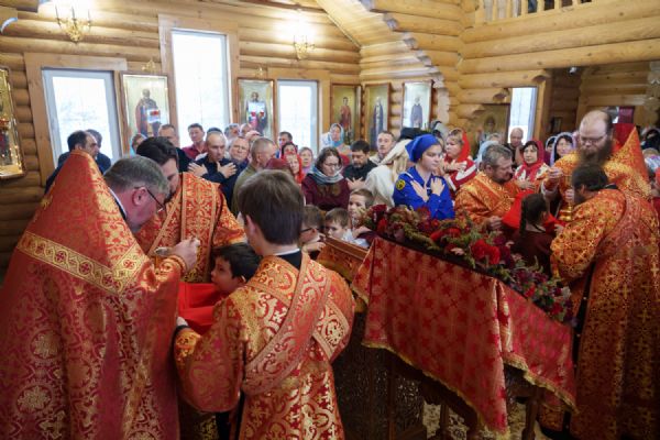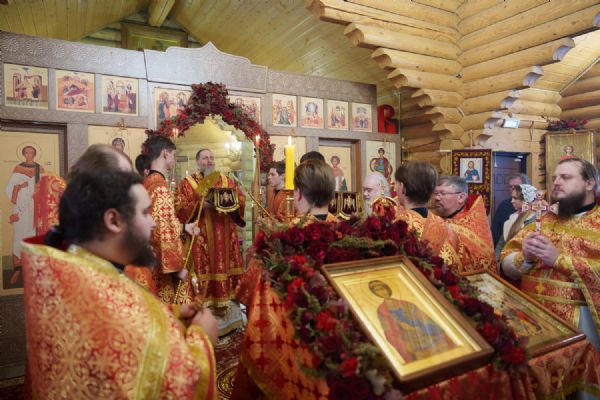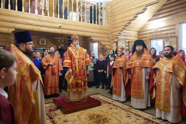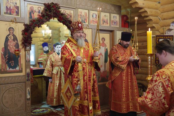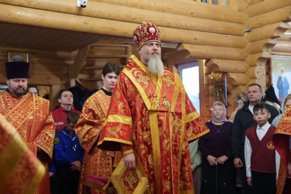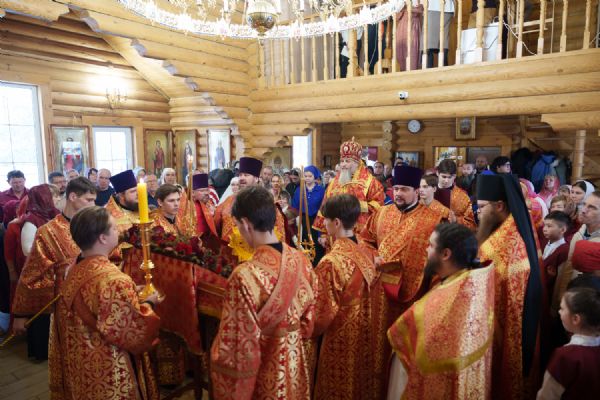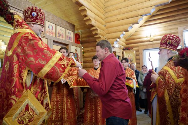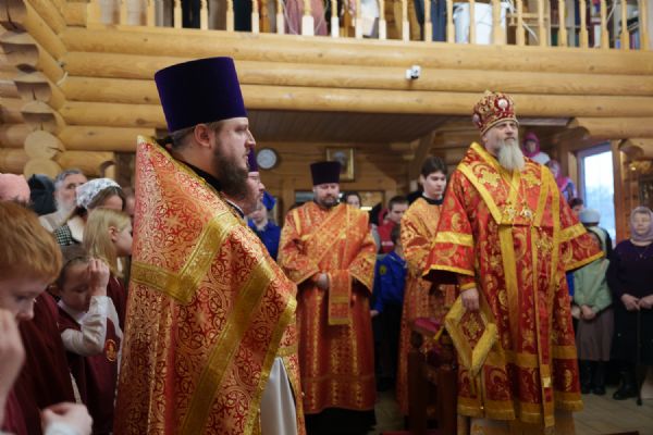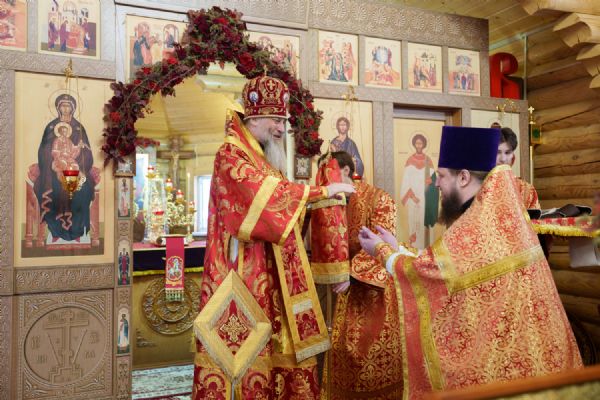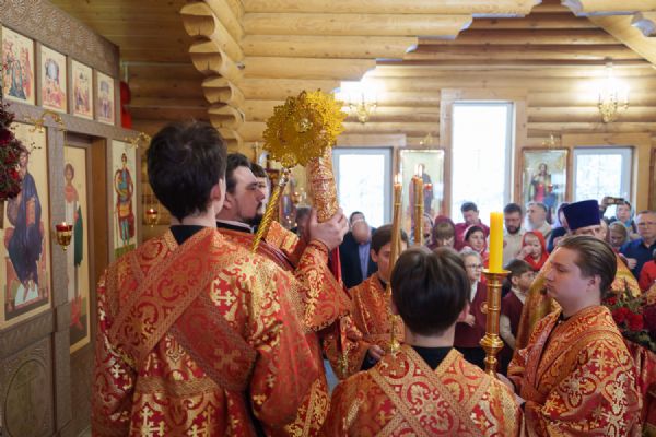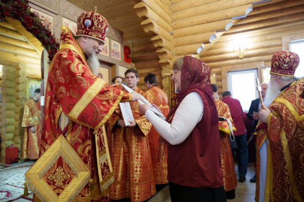 Владыка Никодим также поздравил молящихся с престольным днём храма: "Пять лет уже стоит этот деревянный храм, я помню, как мы его начинали, как делали первые зарубки топором, как потом строили. Храм стоит, он стал воистину центром духовной жизни этого района".