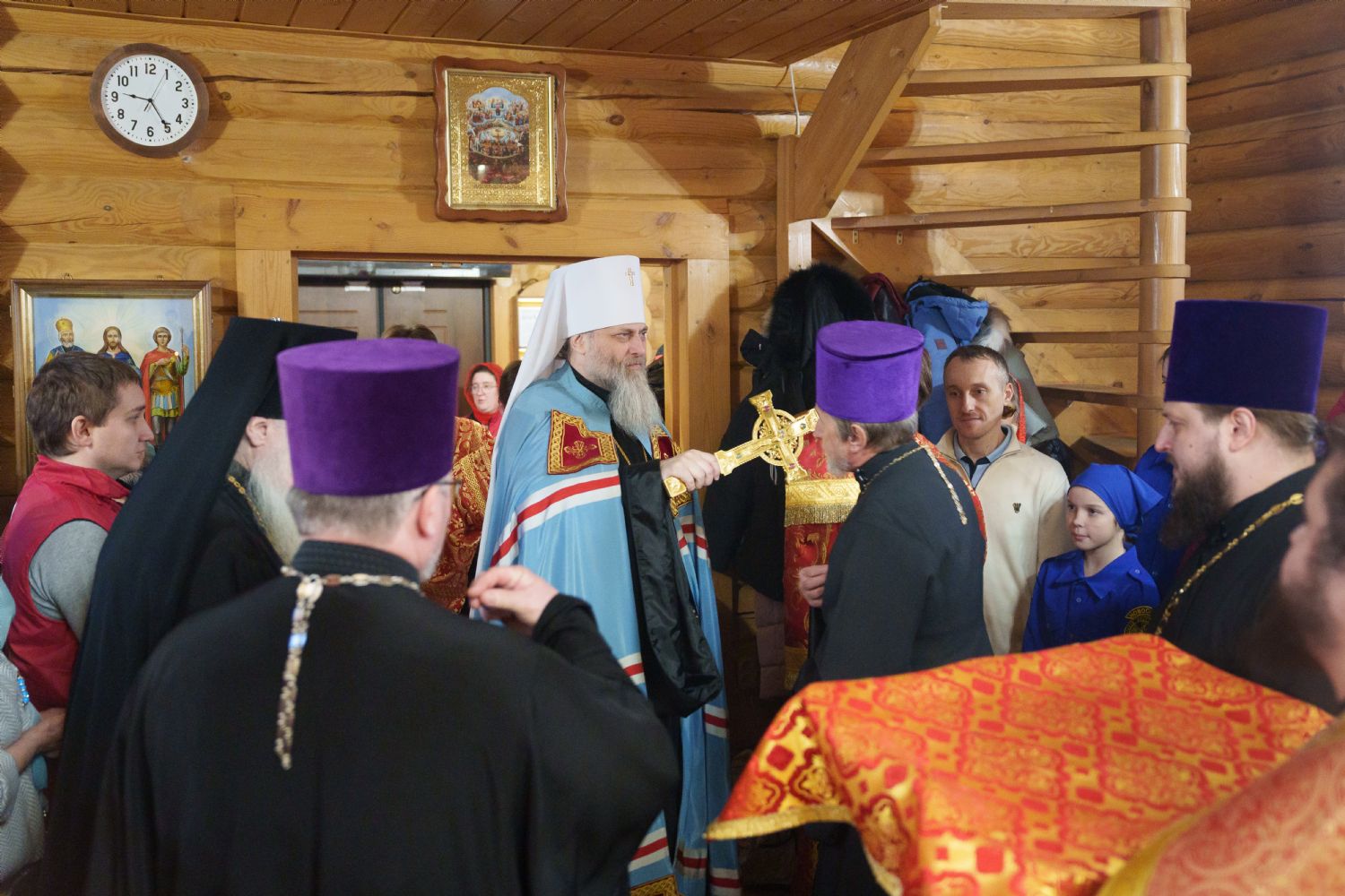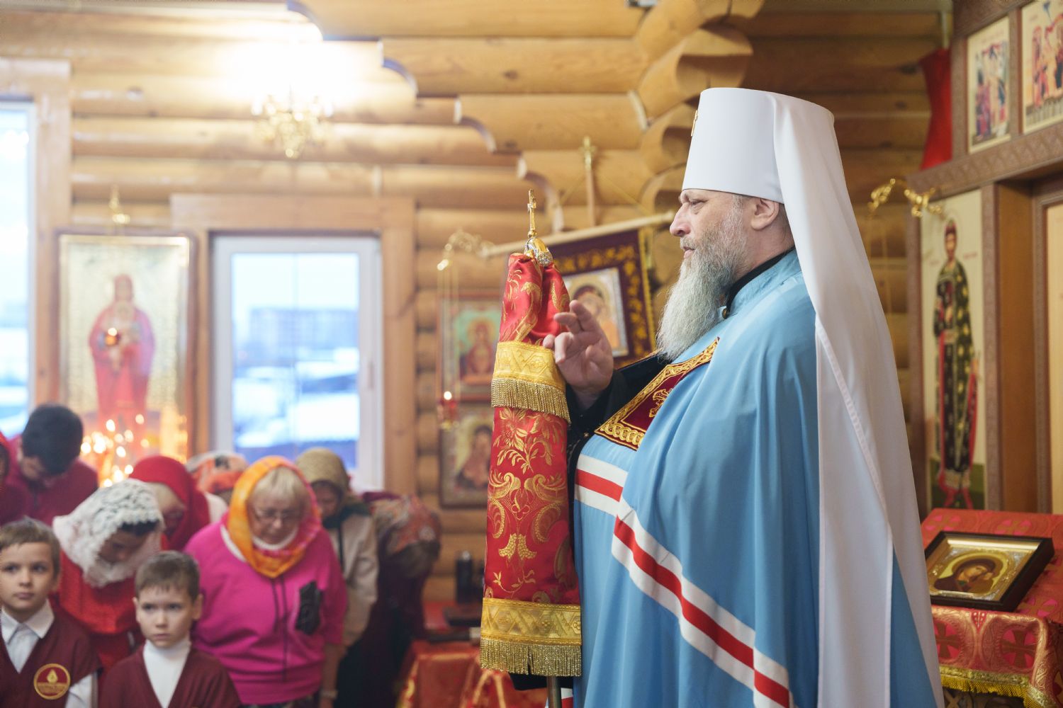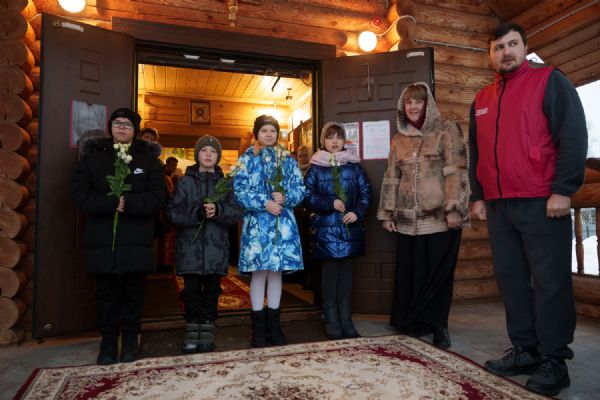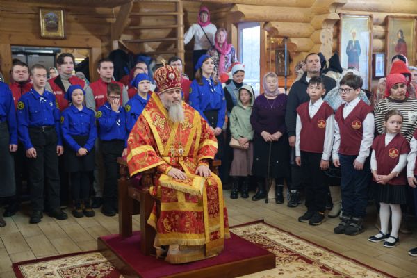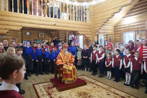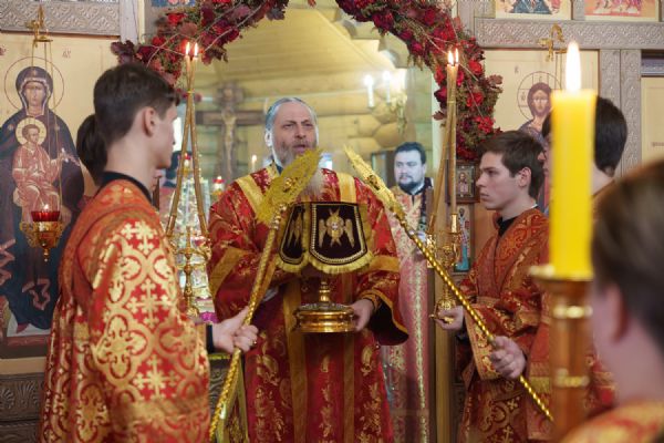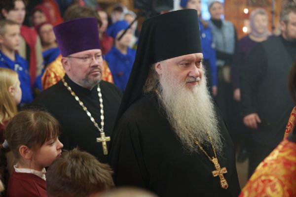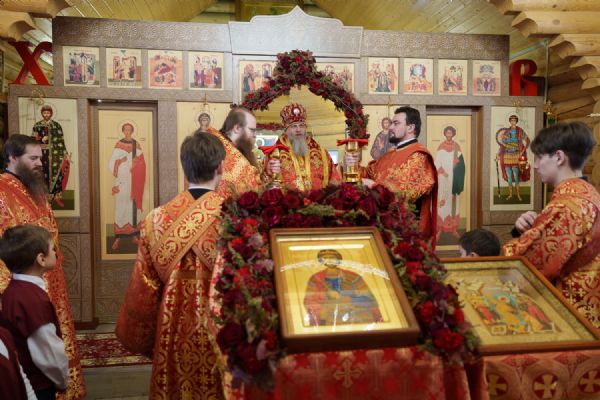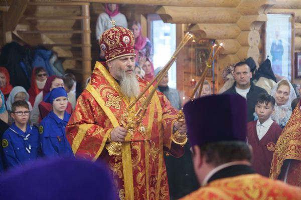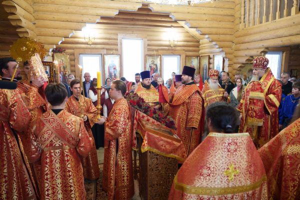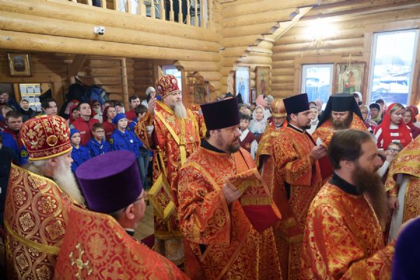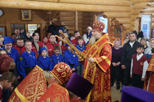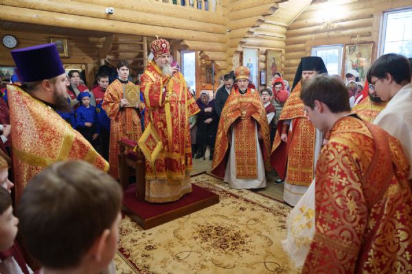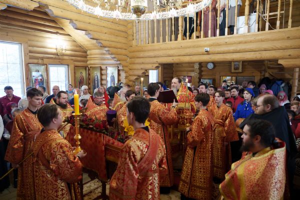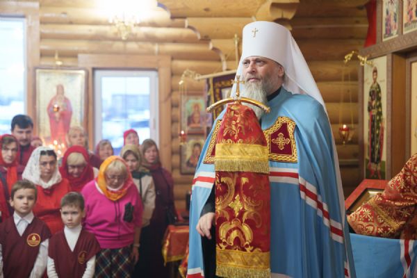 Владыка Никодим также поздравил молящихся с престольным днём храма: "Пять лет уже стоит этот деревянный храм, я помню, как мы его начинали, как делали первые зарубки топором, как потом строили. Храм стоит, он стал воистину центром духовной жизни этого района".