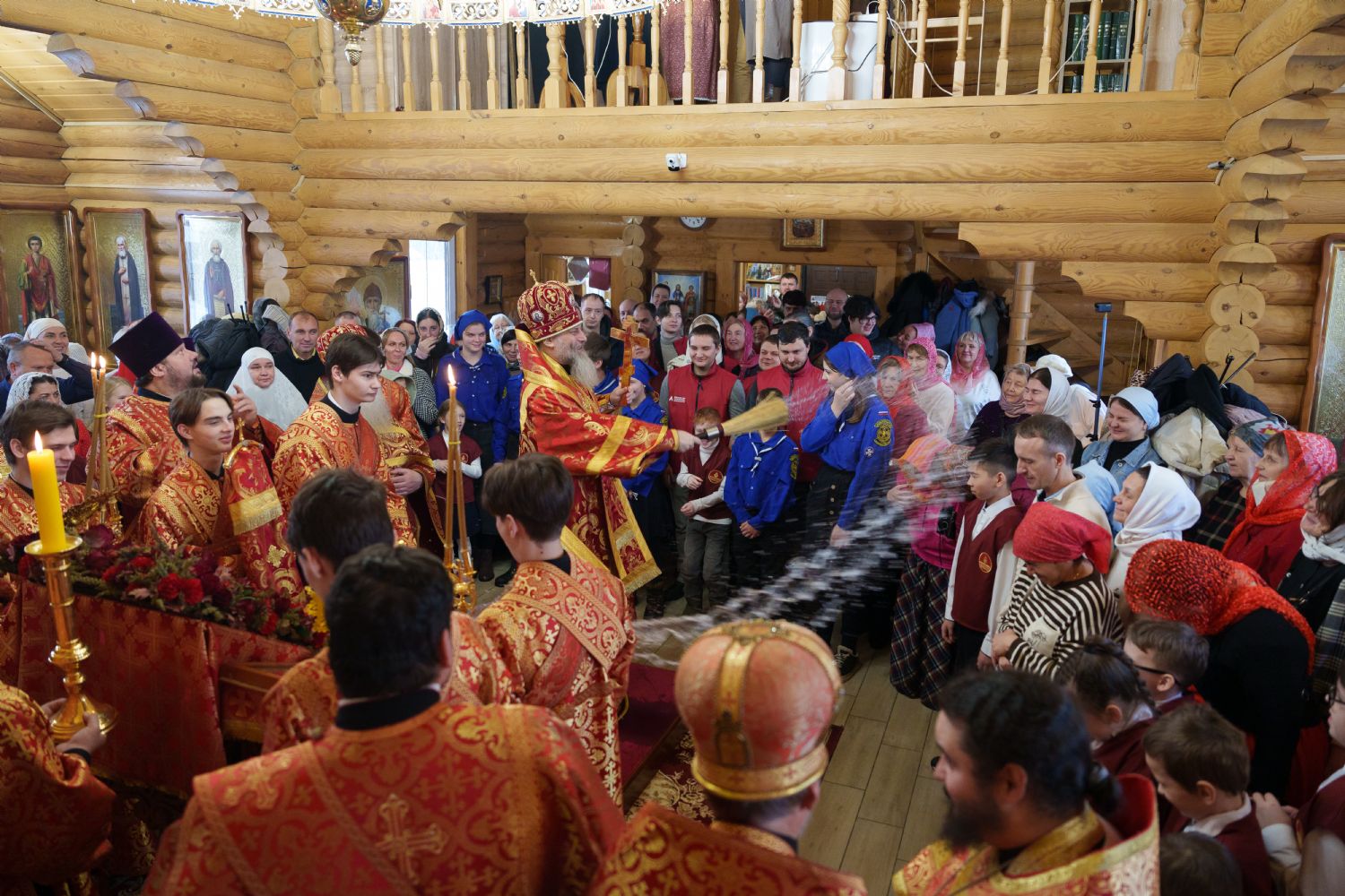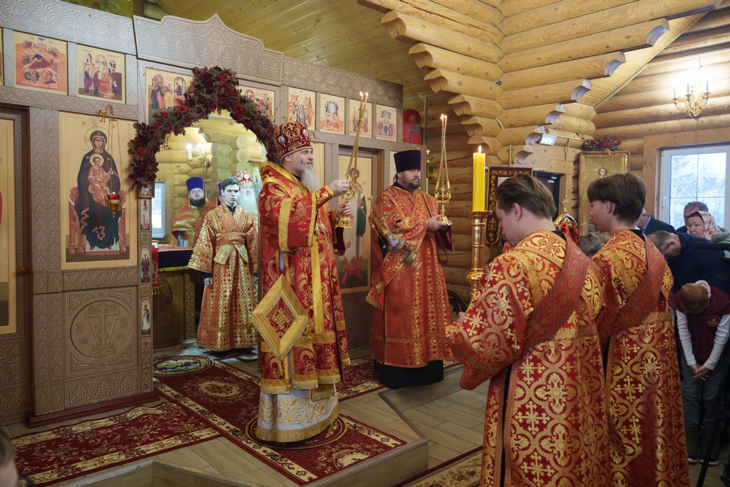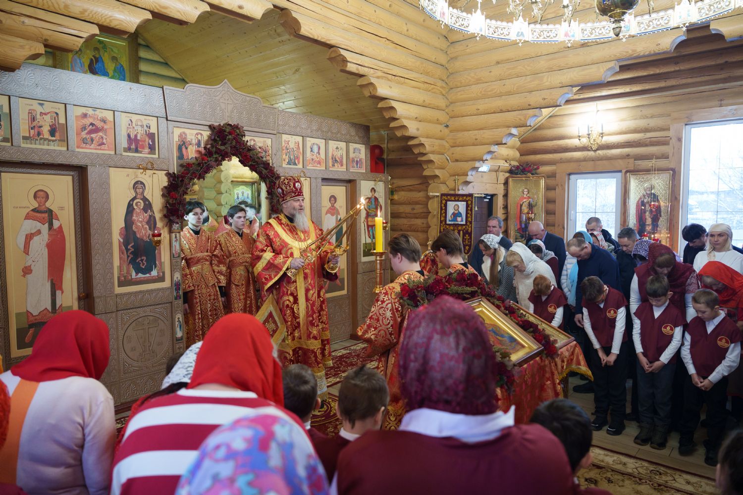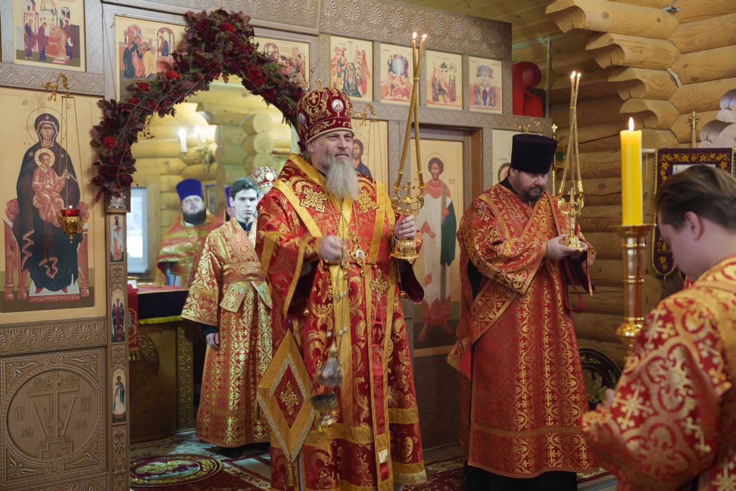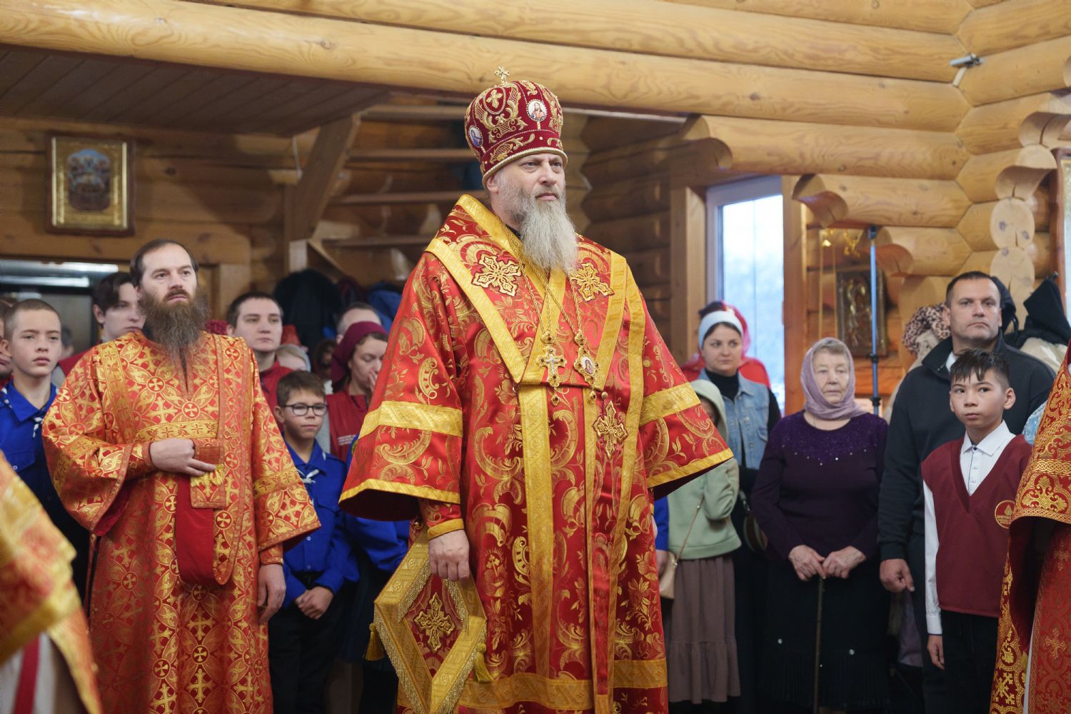 Владыка Никодим также поздравил молящихся с престольным днём храма: "Пять лет уже стоит этот деревянный храм, я помню, как мы его начинали, как делали первые зарубки топором, как потом строили. Храм стоит, он стал воистину центром духовной жизни этого района".