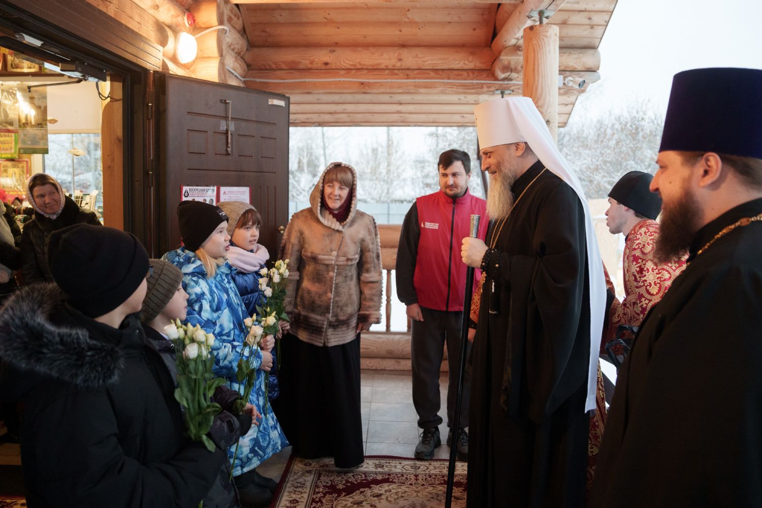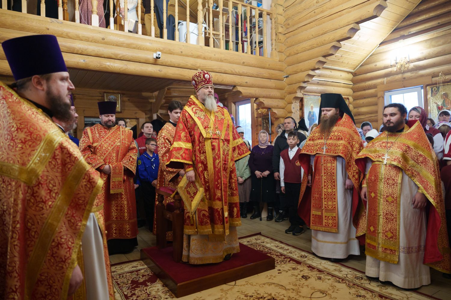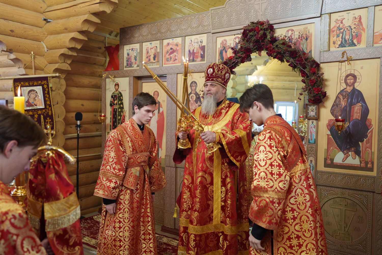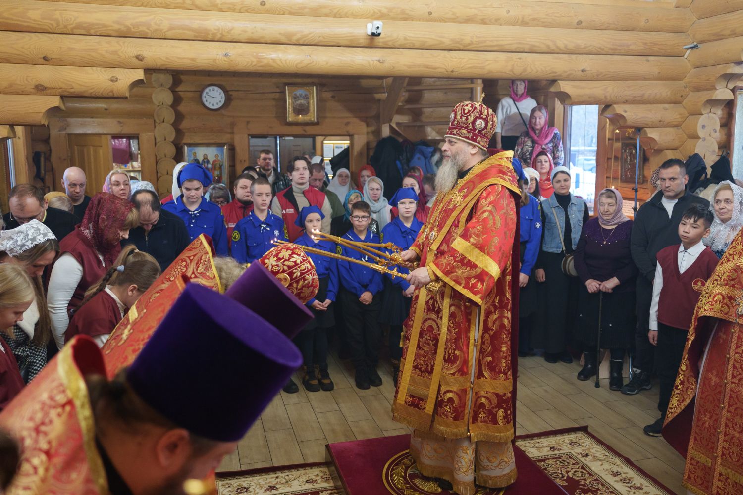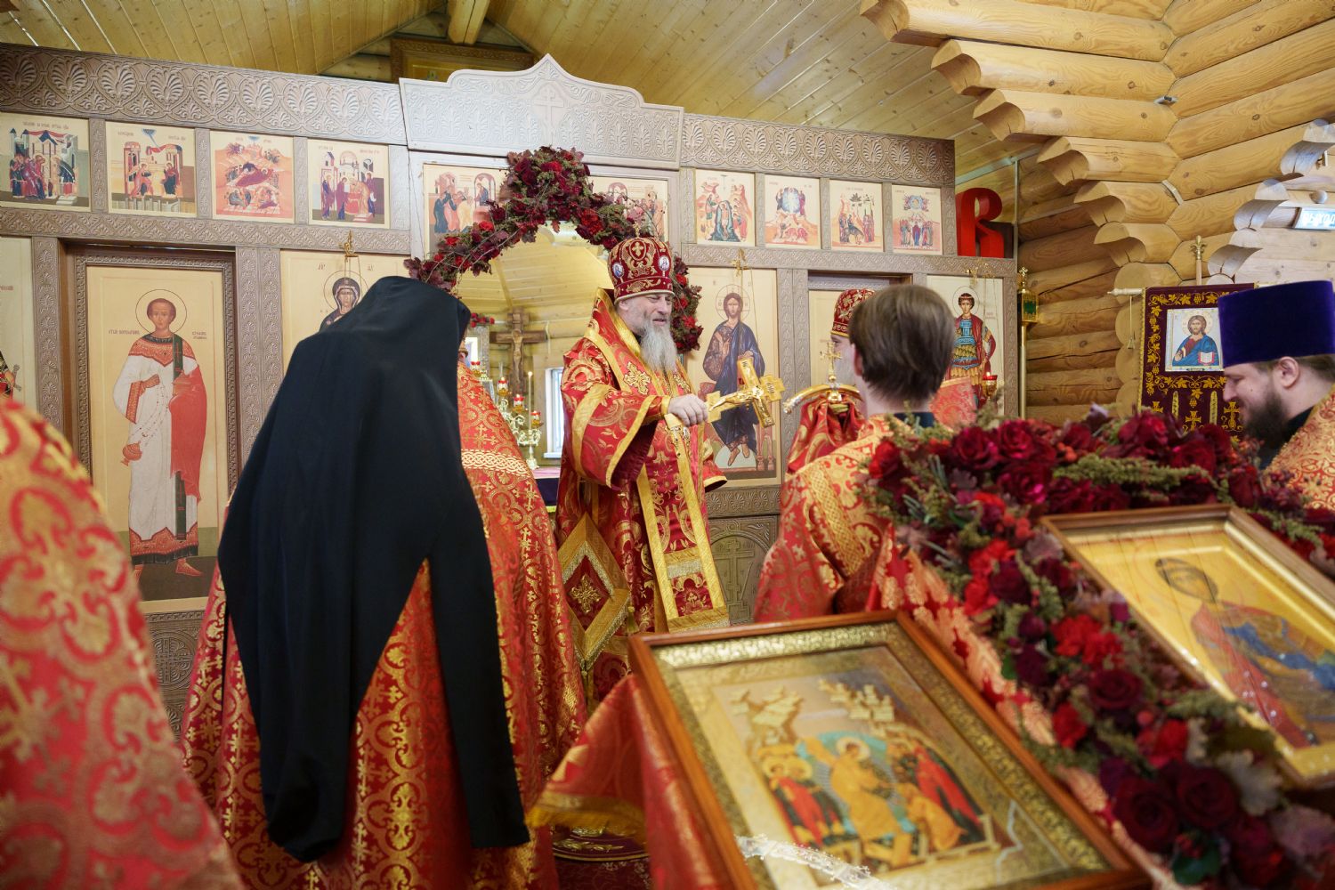 Владыка Никодим также поздравил молящихся с престольным днём храма: "Пять лет уже стоит этот деревянный храм, я помню, как мы его начинали, как делали первые зарубки топором, как потом строили. Храм стоит, он стал воистину центром духовной жизни этого района".