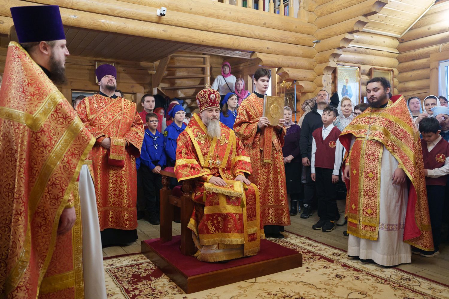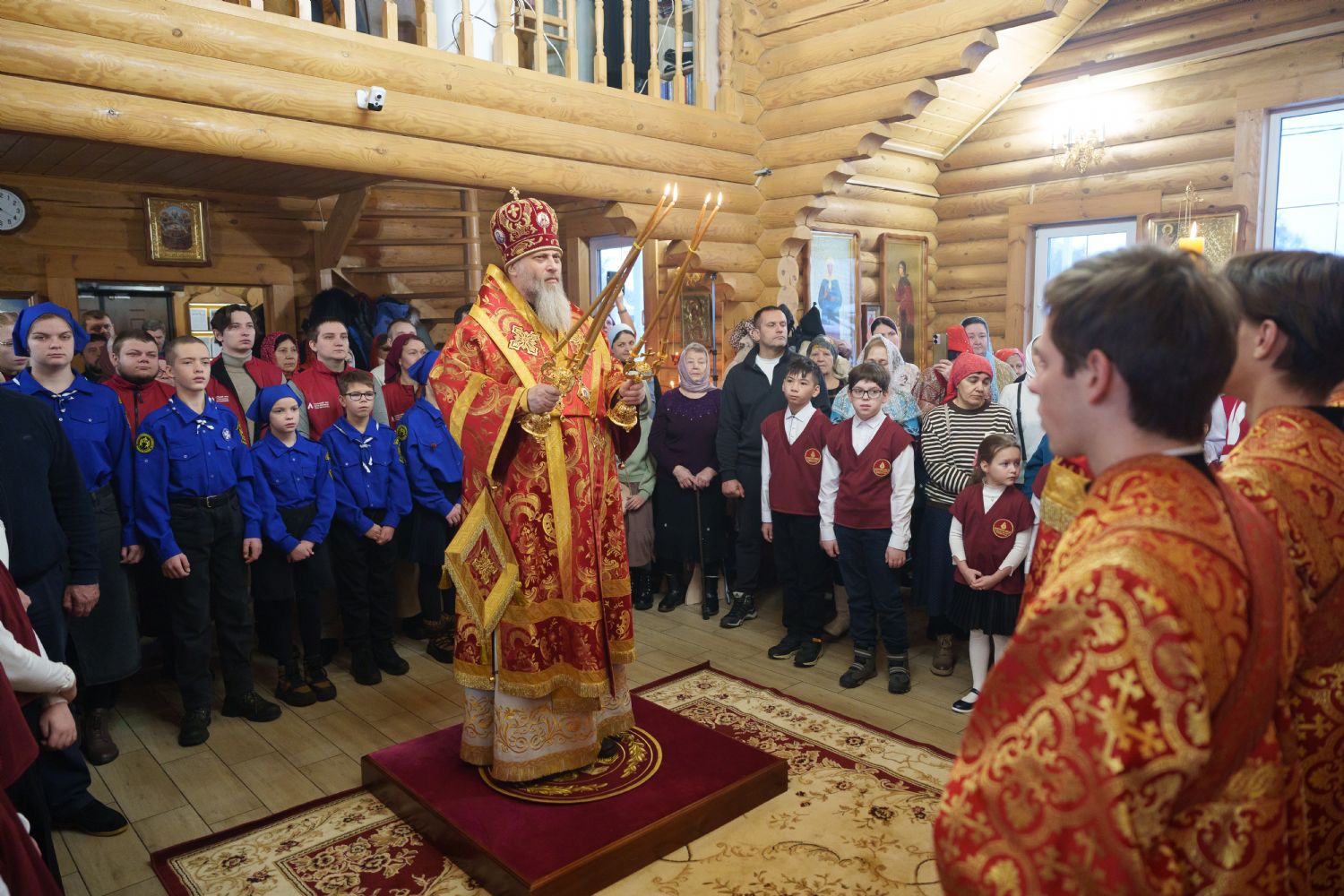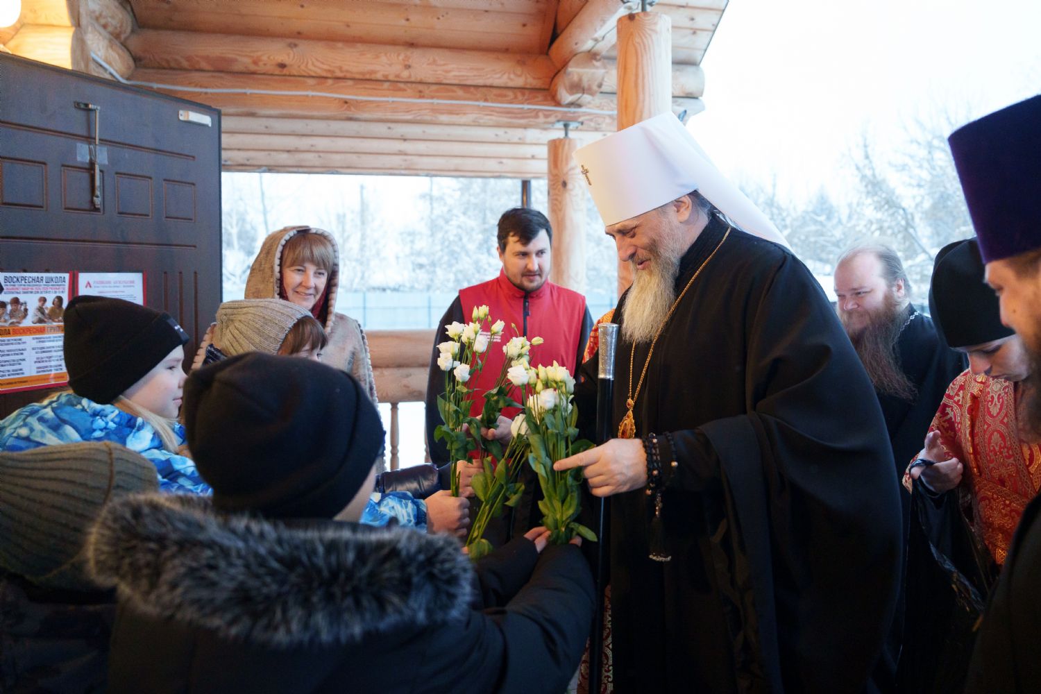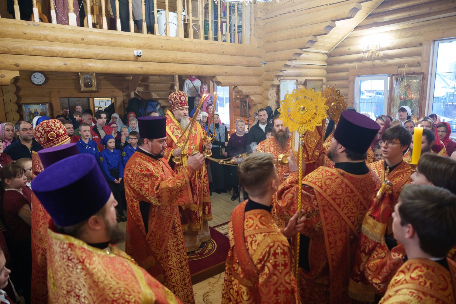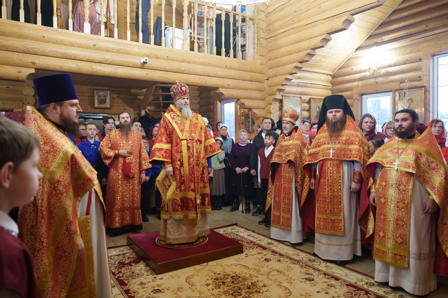 Владыка Никодим также поздравил молящихся с престольным днём храма: "Пять лет уже стоит этот деревянный храм, я помню, как мы его начинали, как делали первые зарубки топором, как потом строили. Храм стоит, он стал воистину центром духовной жизни этого района".