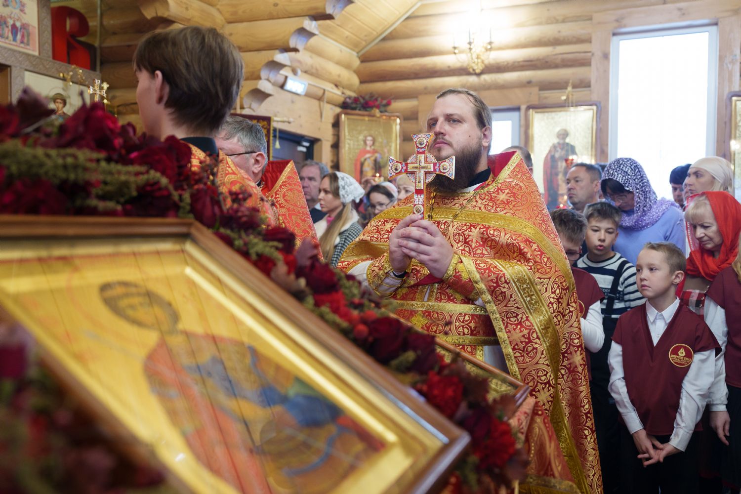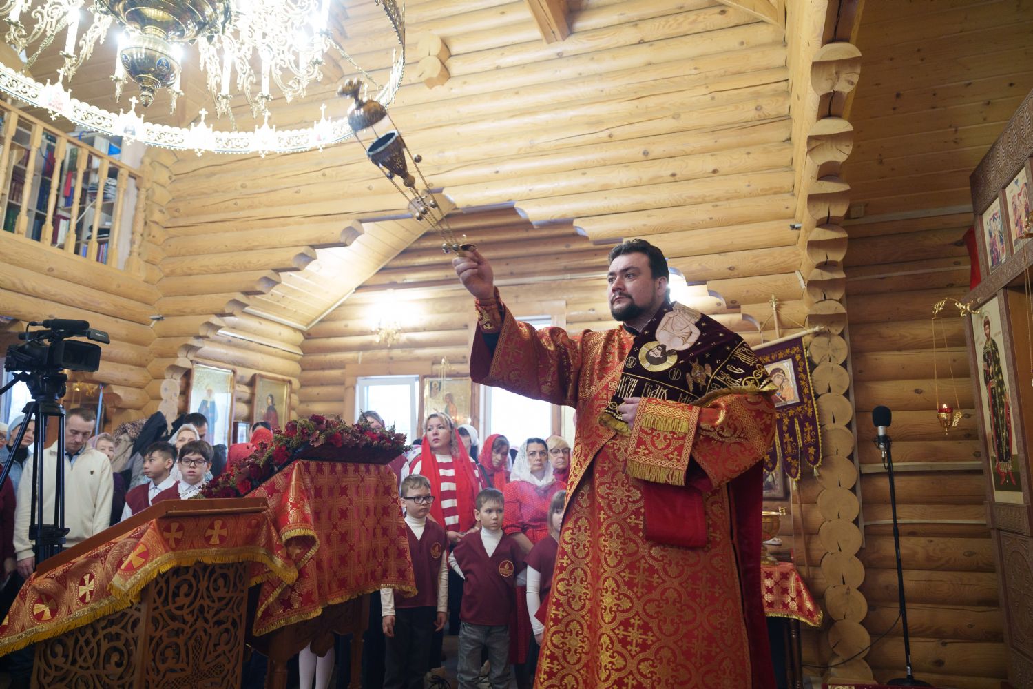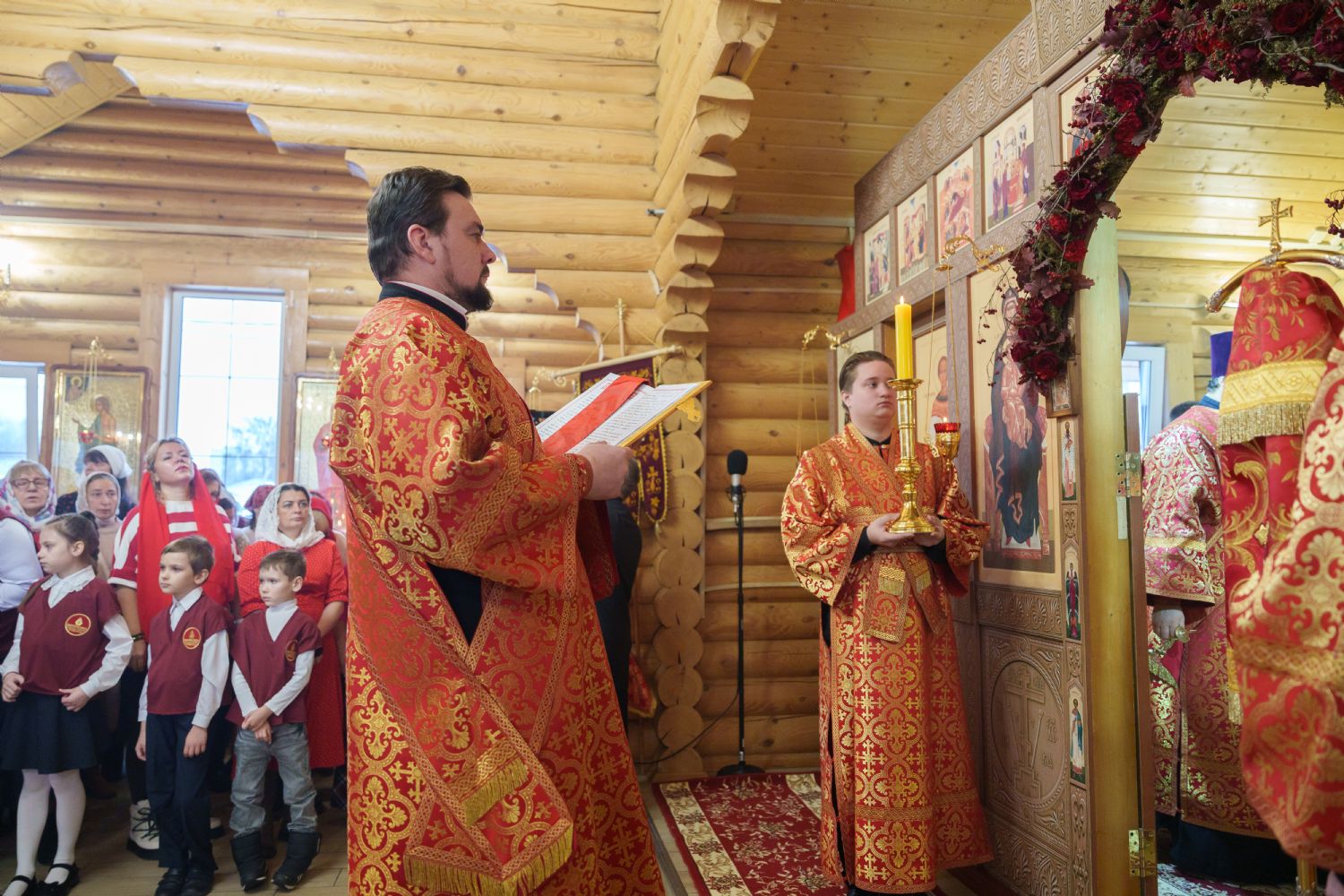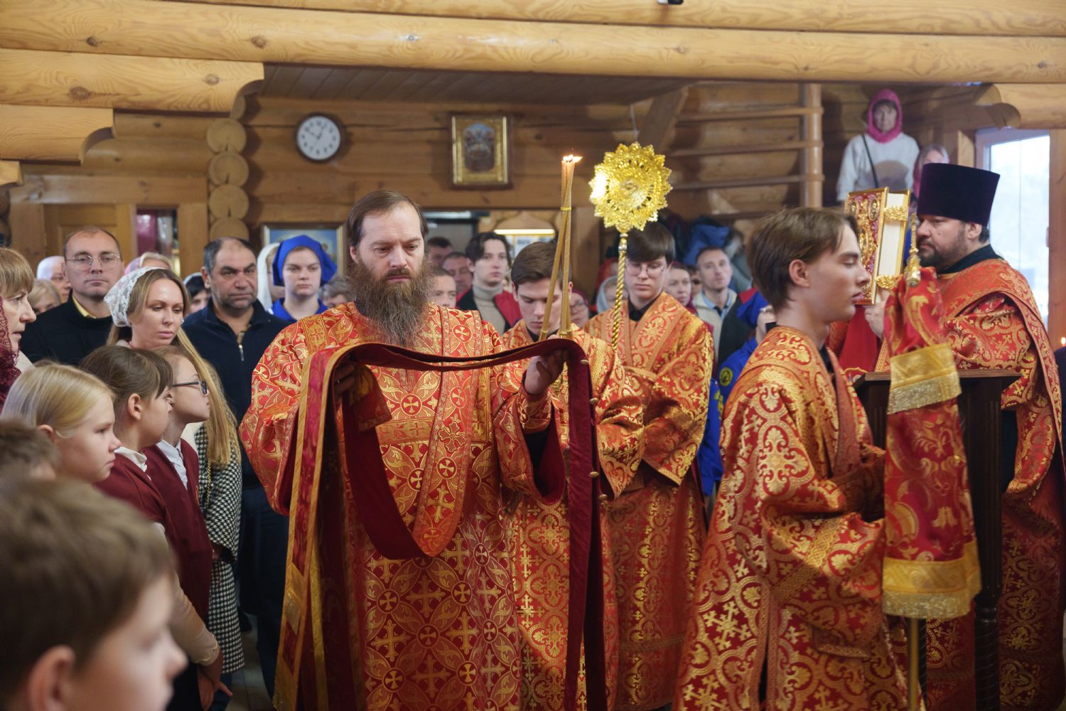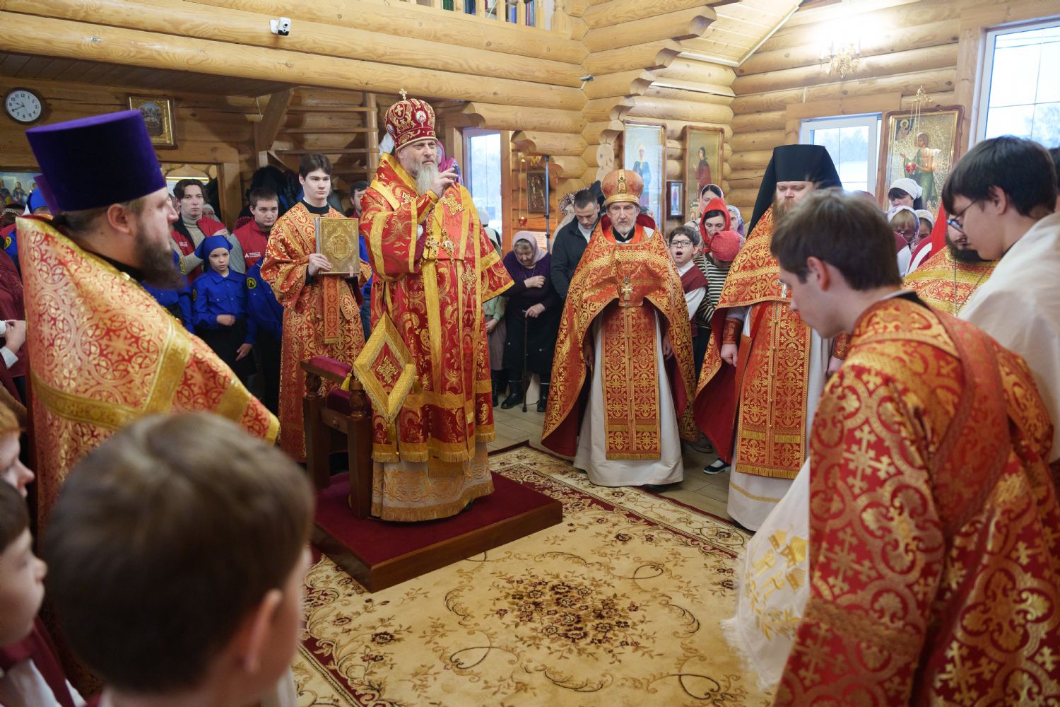Владыка Никодим также поздравил молящихся с престольным днём храма: "Пять лет уже стоит этот деревянный храм, я помню, как мы его начинали, как делали первые зарубки топором, как потом строили. Храм стоит, он стал воистину центром духовной жизни этого района".