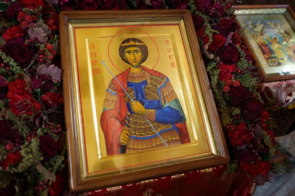 Святой великомученик Георгий Победоносец в этот день воспринял страшные страдания: он, молодой человек, знатный, богатый, всем известный, он не побоялся всё это отдать Господу. Он, горя верою своею, переносит страшнейшие страдания.