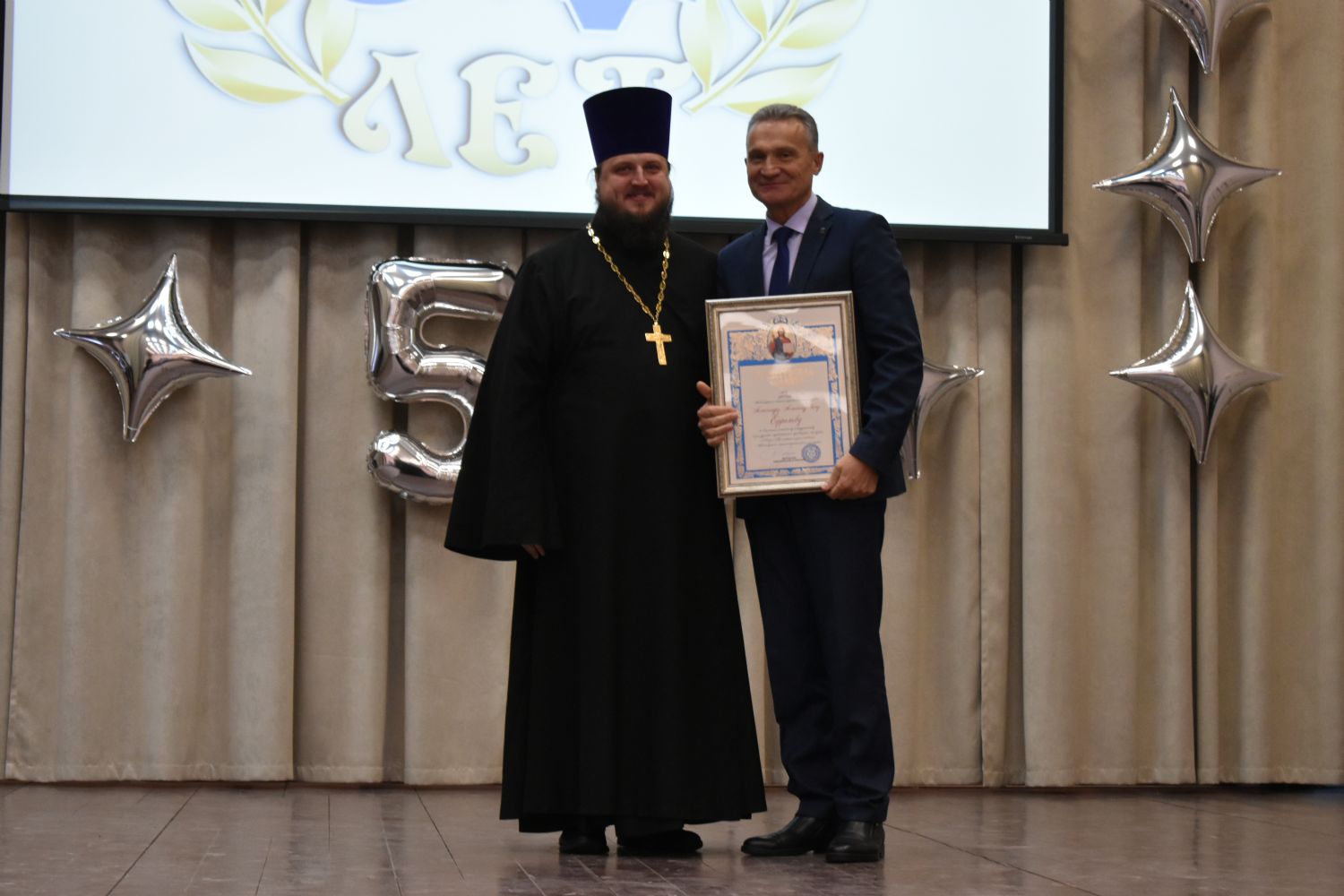 С приветственным словом к собравшимся выступил помощник Управляющего Новосибирской епархии Русской Православной Церкви, настоятель храма во имя святого великомученика Георгия Победоносца г. Новосибирска, член Общественной палаты Новосибирской области иерей Александр Сахненко. Отец Александр передал всем благословение митрополита Новосибирского и Бердского Никодима, а также вручил архиерейские награды особо потрудившимся на ниве духовно-нравственного просвещения молодёжи. Благословенной Архиерейской грамотой был награждён директор колледжа Александр Александрович Ефремов. Благодарственными письмами Новосибирской епархии заместителя директора колледжа по учебно-воспитательной работе Елену Владимировну Савушкину и советника директора колледжа по воспитанию и взаимодействию с детскими общественными объединениями Екатерину Александровну Ясинскую.