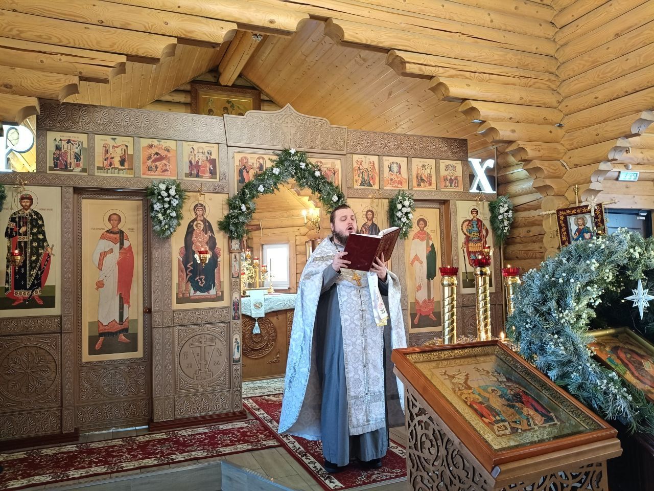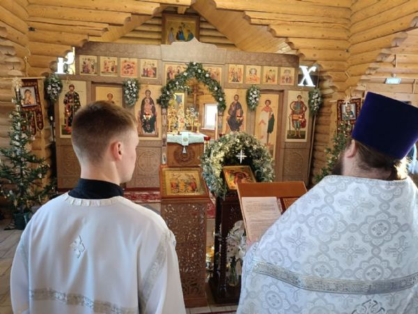 8 января, в день Тезоименитства митрополита Новосибирского и Бердского Никодима, Владыке сослужил клирик Георгиевского храма иерей Максим Бутенко и был награждён тезоименитым Владыкой правом ношения набедренника.