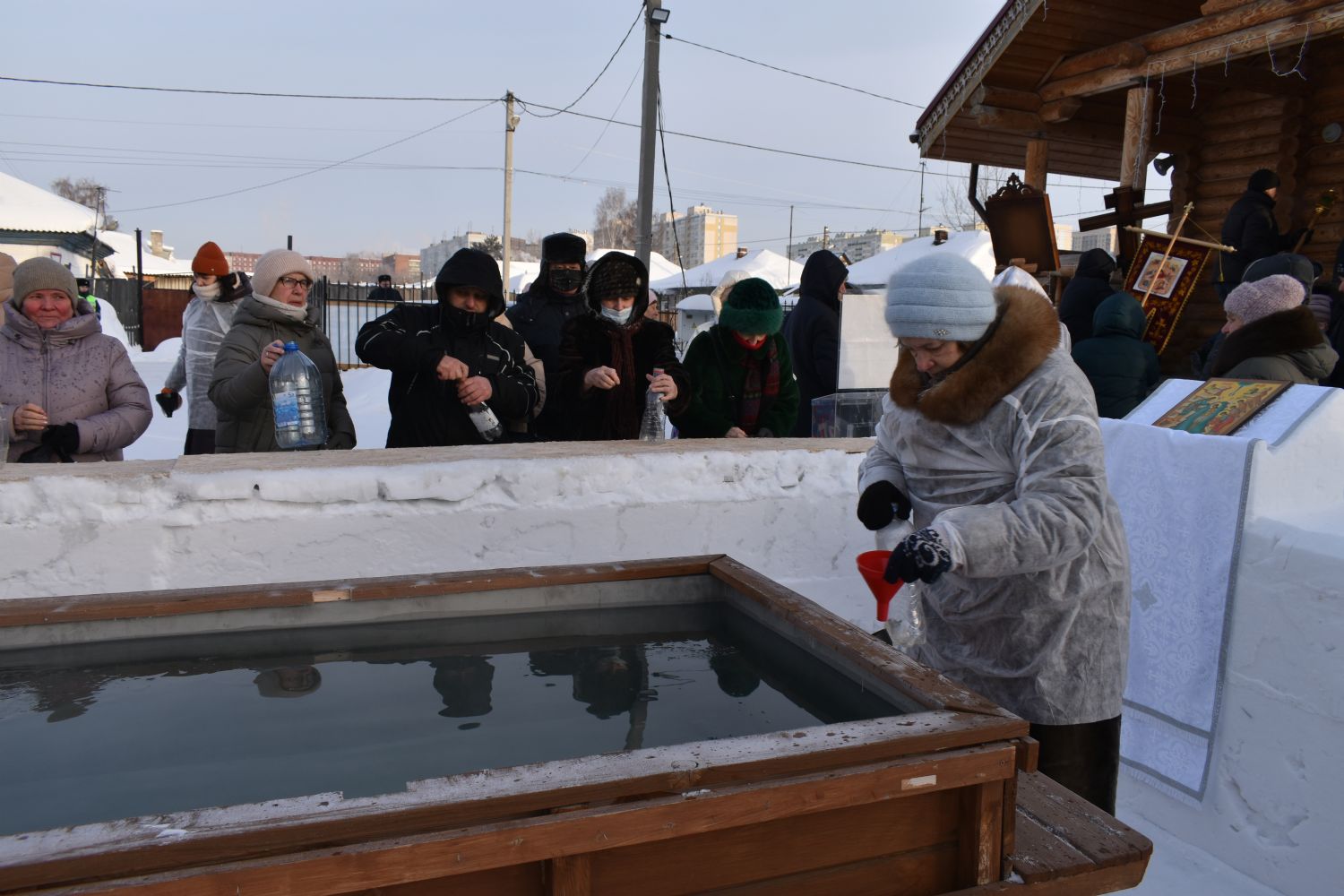 19 января в Георгиевском храме раздавали Святую воду до 21:00. Раздача воды происходила на улице из морозной купели, разливали Агиасму прихожане, добровольцы и местные жители, а также дети и молодежь. Дважды за день совершались праздничные молебны.