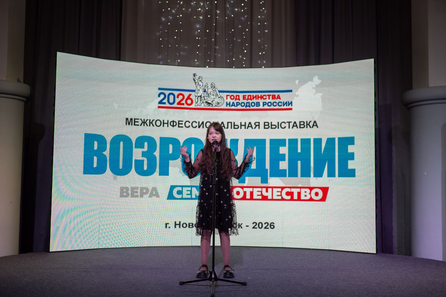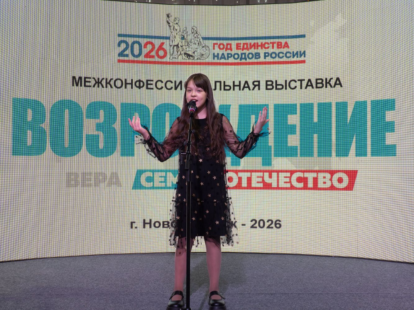 В рамках проведения третьей выставки первый день был посвящён Православной вере. Сразу после торжественной церемонии открытия состоялось приветствие зрителей от имени Новосибирской епархии Русской Православной Церкви. Перед зрителями выступил праздничный ансамбль Прихода под руководством Евгения Мельникова, который исполнил ряд духовных песнопений. Стихотворение о православной вере прочитал выпускник Воскресной школы Прихода Константин Скажутин. Польскую колядку "Вифлеем" исполнила учащаяся средней группы Воскресной школы Марфа Сахненко и песню "Бежим мы по свету" Ирины Патрахиной. С творческим номером на домре выступил лауреат детских музыкальных конкурсов Петр Межаков. Зрители наградили артистов заслуженными апплодисментами.