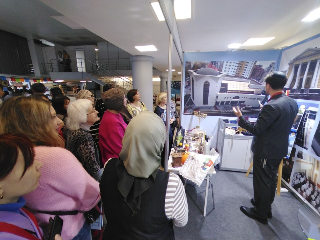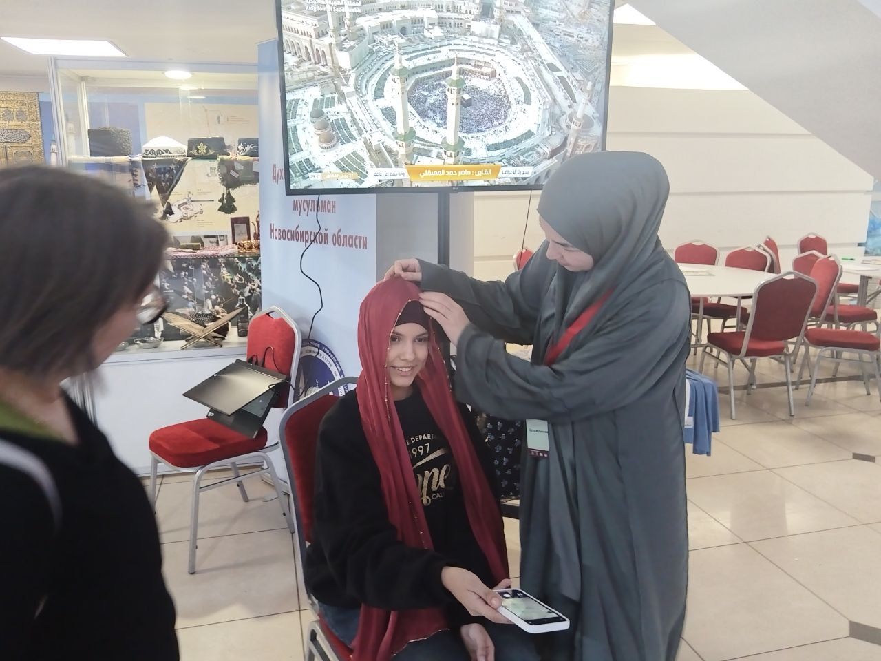 Последним стендом, который посетили наши прихожане, стал стенд Духовного управления мусульман Новосибирской области. Здесь проходили мастер-классы по завязыванию чалмы и платка. Священные книги, благовония, особенные электронные "чётки" и презентативный ряд тематической одежды и утвари не оставил зрителей равнодушными.