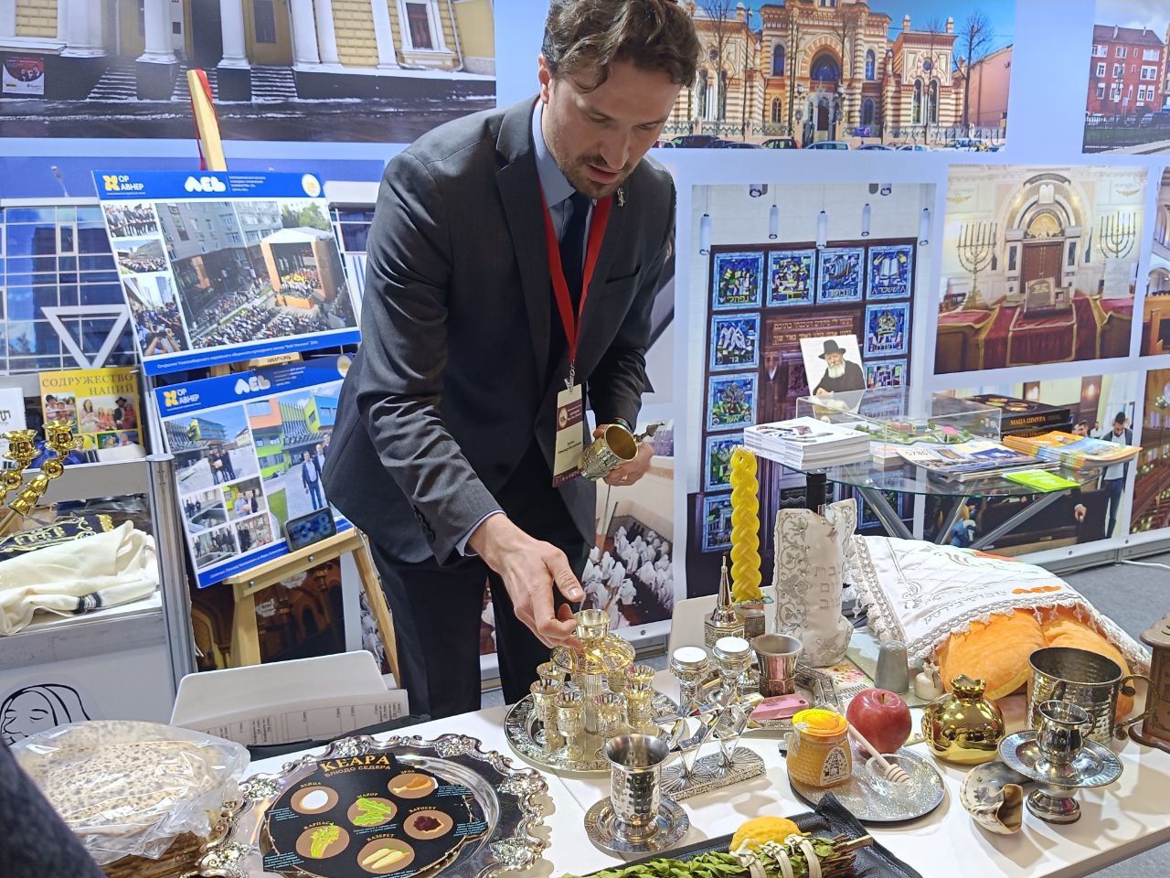 На стенде еврейской общины города Новосибирска экскурсантов приветствовал её председатель — Сендер Круглов. Александр Константинович подробно рассказал посетителям выставки о еврейских традициях и обрядах, здании синагоги, еврейском культурном центре, кошерном ресторане, еврейском лицее и особом центре для детей-инвалидов. Множество предметов из еврейского религиозно-культурного была вызывали неподдельный интерес, как и для многих собравшихся интересным интерактивом была сооруженная небольшая копия всемирно известной Стены Плача, куда каждый мог написать и бросить записку, а записки реально потом увозятся на Святую Землю и действительно попадают в щели Стены.