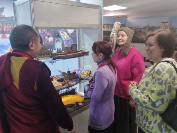 Выставку утвари из местного дацана провёл желающим Бачир-лама, подробно рассказав не только о каждом экспанте, но и в целом о буддизме и его особенностях.