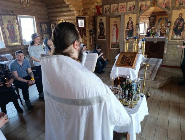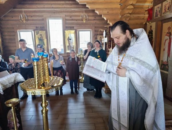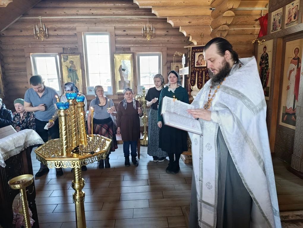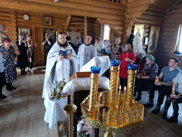Вечером 4 апреля в Георгиевском храме клирики Прихода совершили Всенощное бдение с литией (освящением хлебов и вина), а также освящением верб.