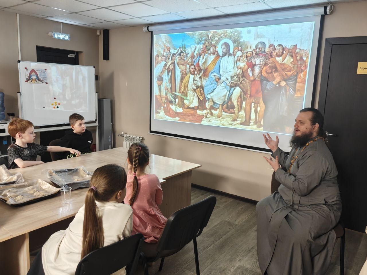 Вечером 4 апреля в Георгиевском храме клирики Прихода совершили Всенощное бдение с литией (освящением хлебов и вина), а также освящением верб.