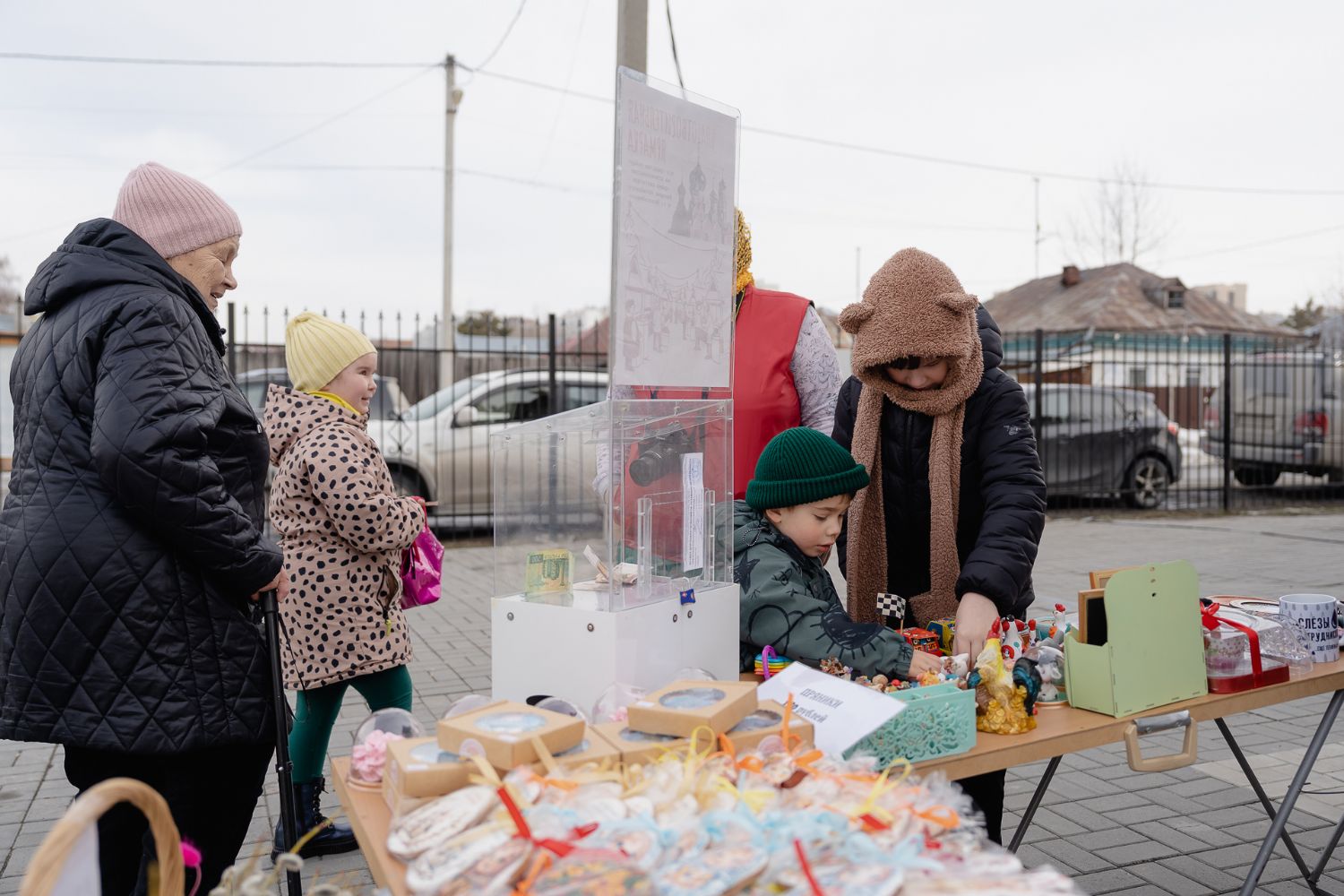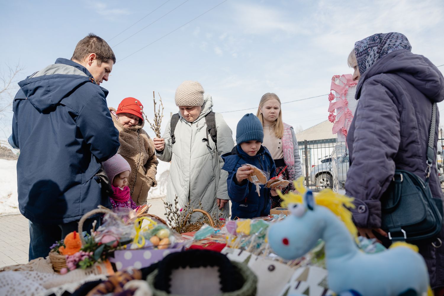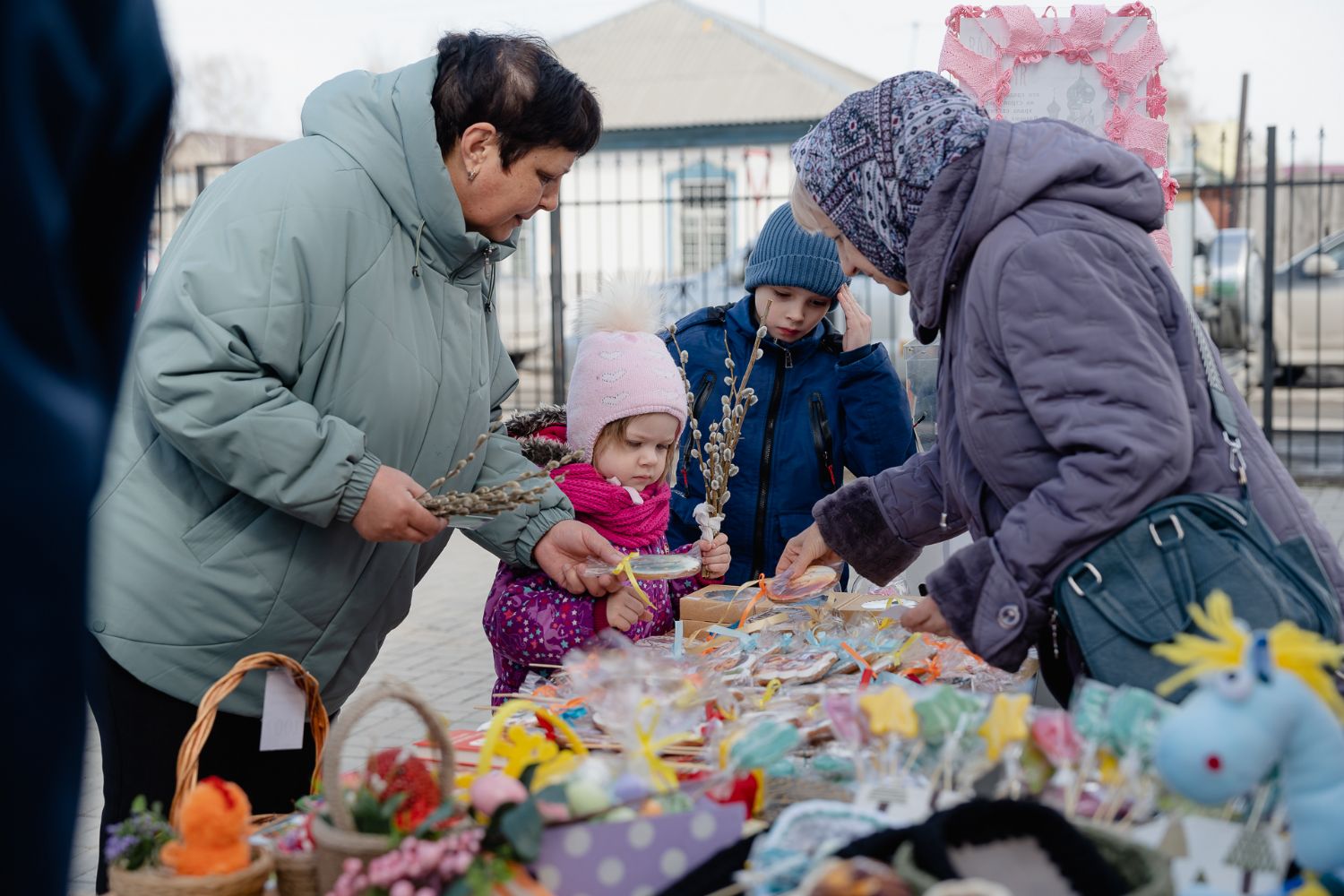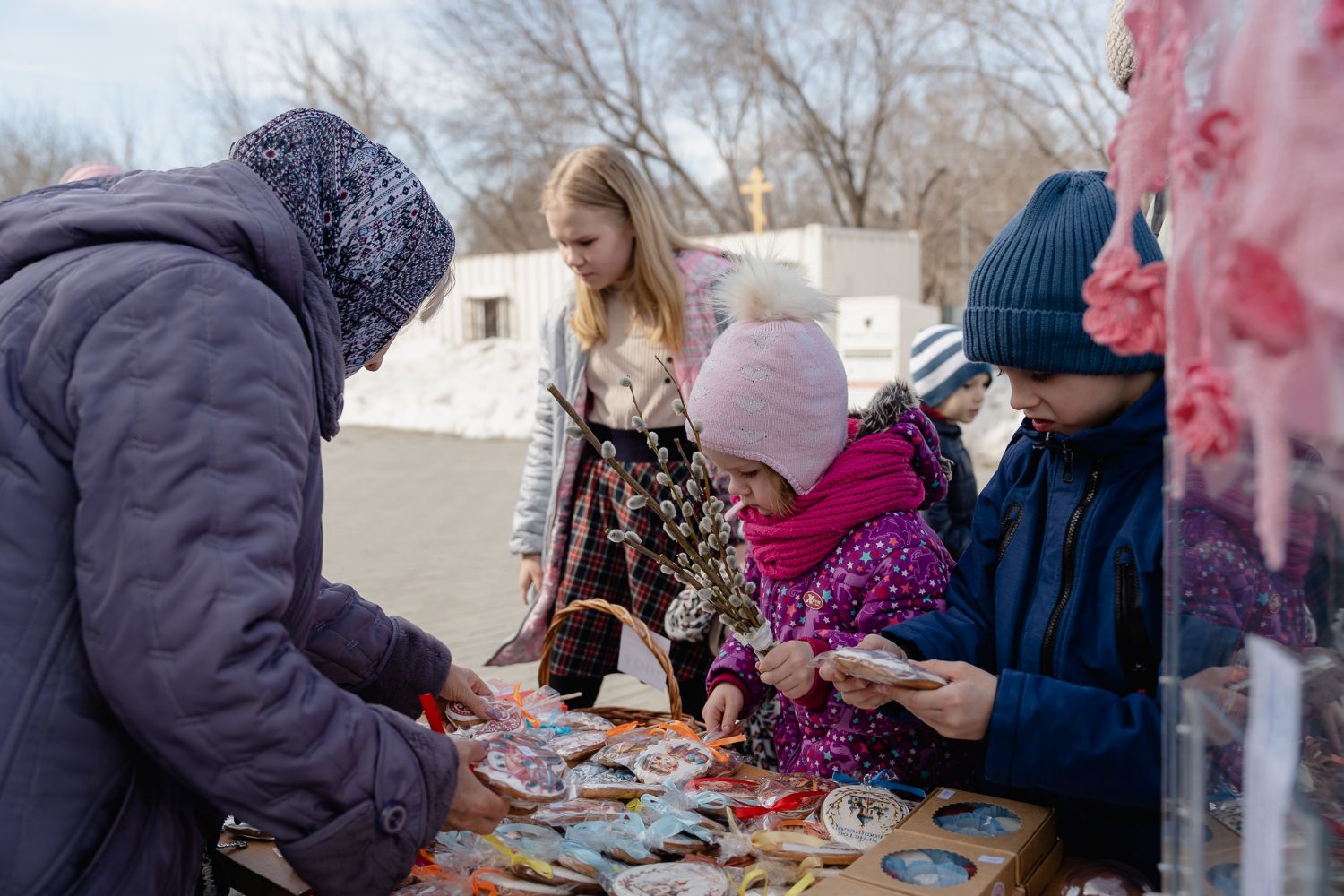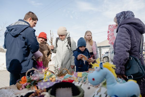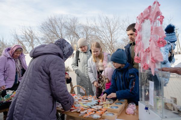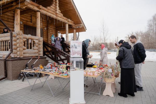 В праздник Входа Господнего в Иерусалим социальный отдел храма во имя святого великомученика Георгия Победоносца г. Новосибирска организовал на приходской территории традиционную предпасахльную ярмарку. На ней в качестве товаров были представлены сладости, изготовленные приходскими мастерицами, а также множество интересных и полезных вещей, которые от всей души принесли из дома прихожане и гости Прихода, чтобы поддержать благотворительную деятельность Прихода.