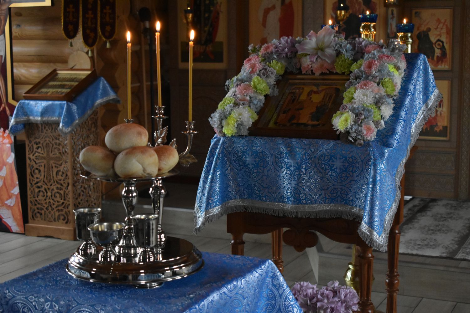 7 апреля 2026 года, в Великий Вторник, праздник Благовещения Пресвятой Богородицы, день преставления святителя Тихона, Патриарха Московского в храме во имя святого великомученика Георгия Победоносца г. Новосибирска состоялись богослужения, положенные по Уставу — часы, изобразительны и вечерня в соединении с Божественной литургией святителя Иоанна Златоуста. Богослужение совершили клирики храма. Пел малый состав праздничного ансамбля Прихода.