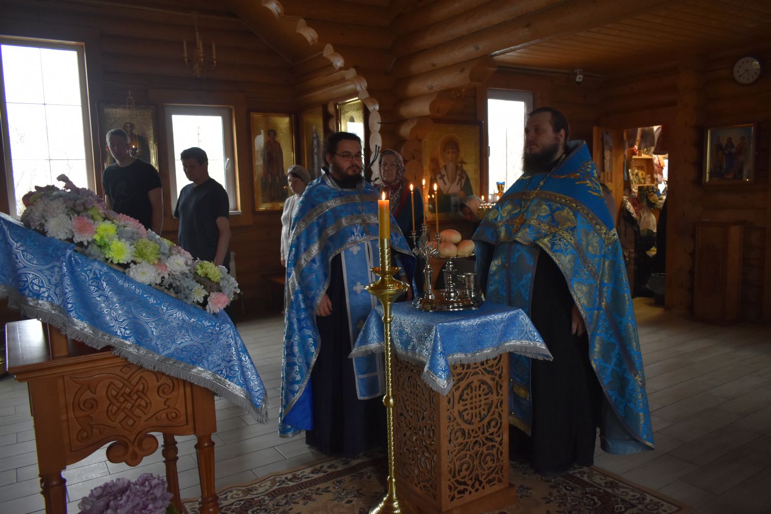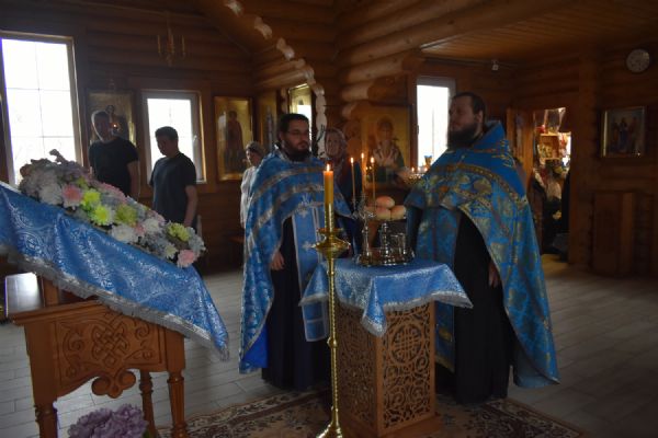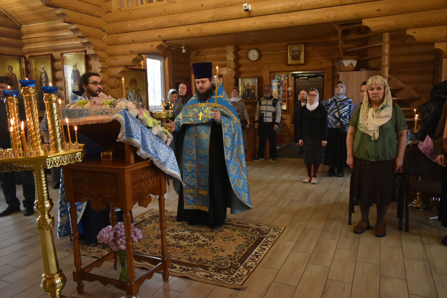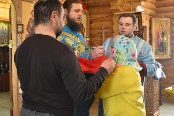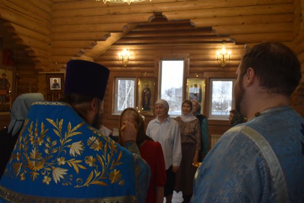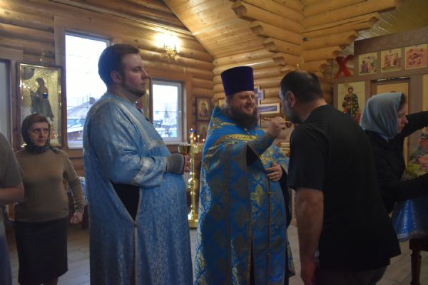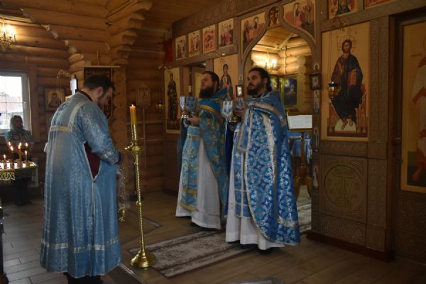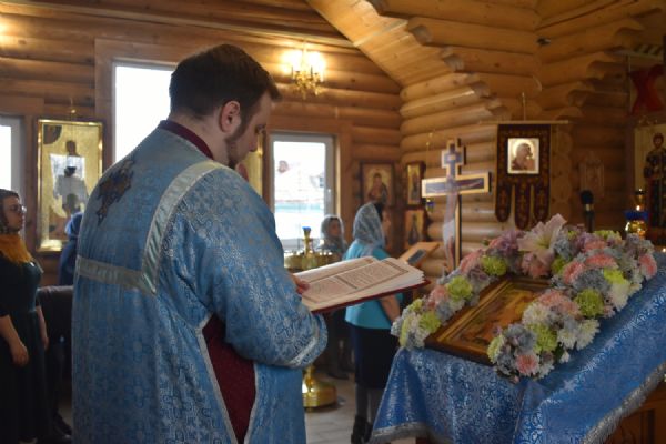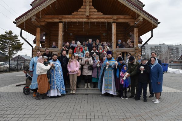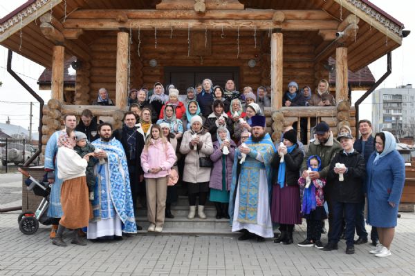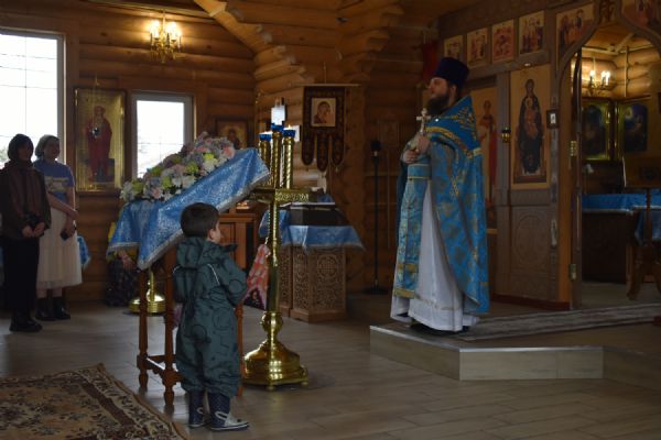 По завершении Литургии было совершено славление празднику Благовещения. Настоятель храма иерей Александр Сахненко произнёс проповедь о празднике Благовещения и его связи со страстной седмицей.