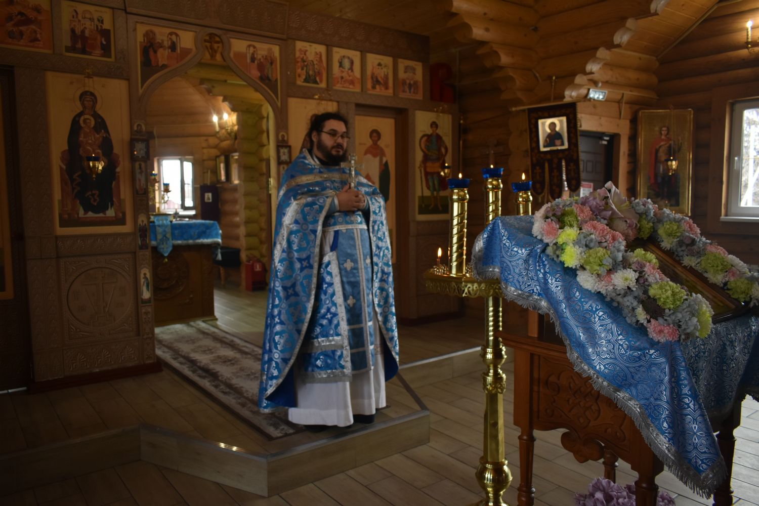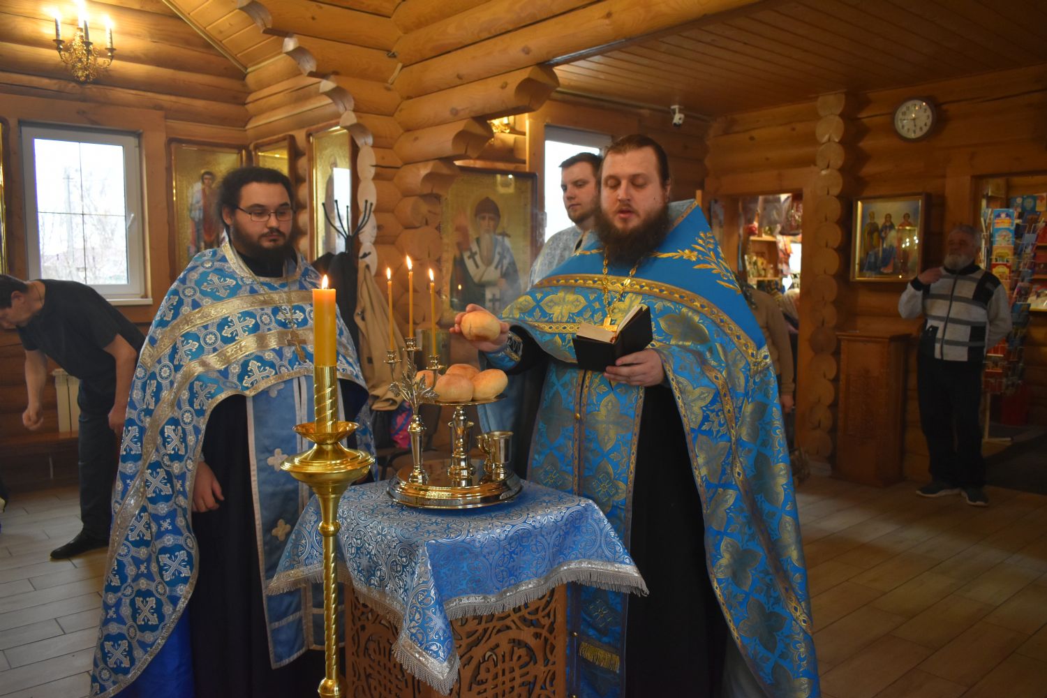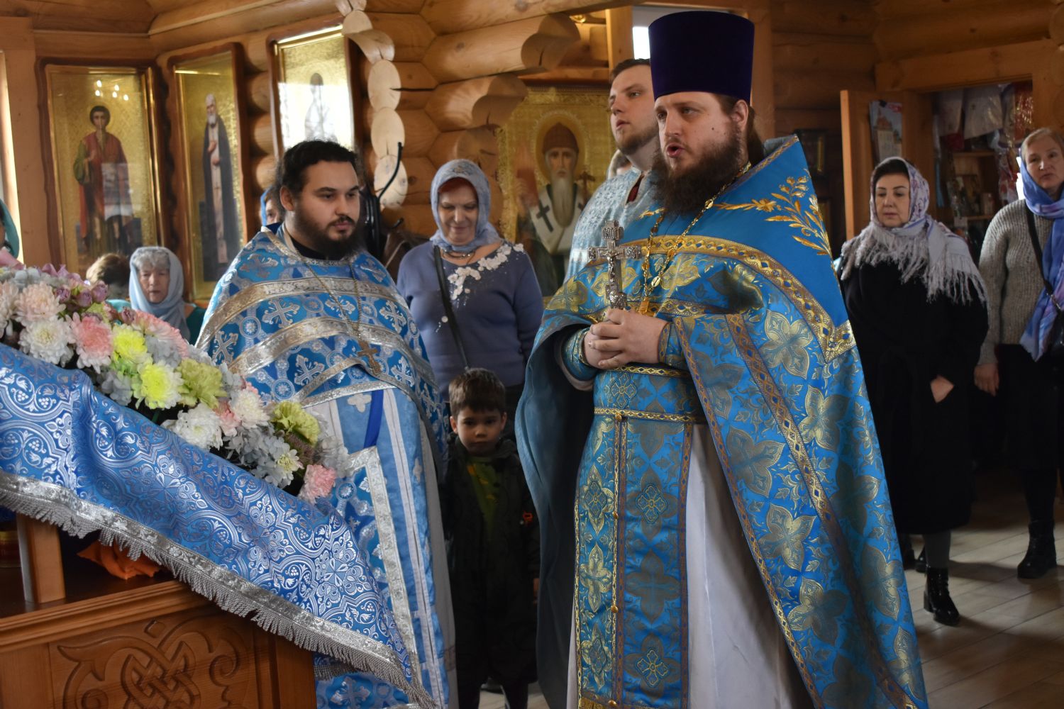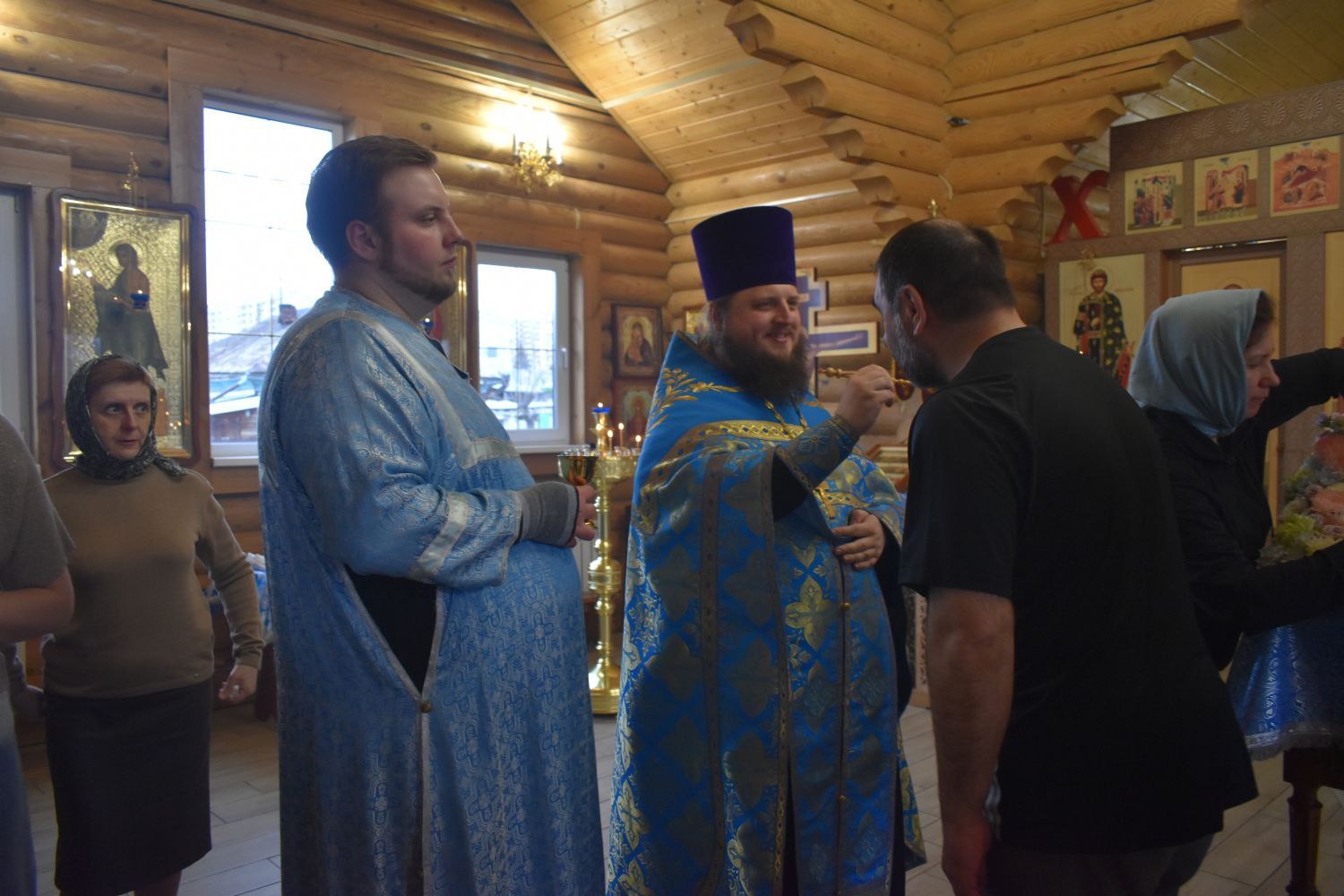 По завершении Литургии было совершено славление празднику Благовещения. Настоятель храма иерей Александр Сахненко произнёс проповедь о празднике Благовещения и его связи со страстной седмицей.