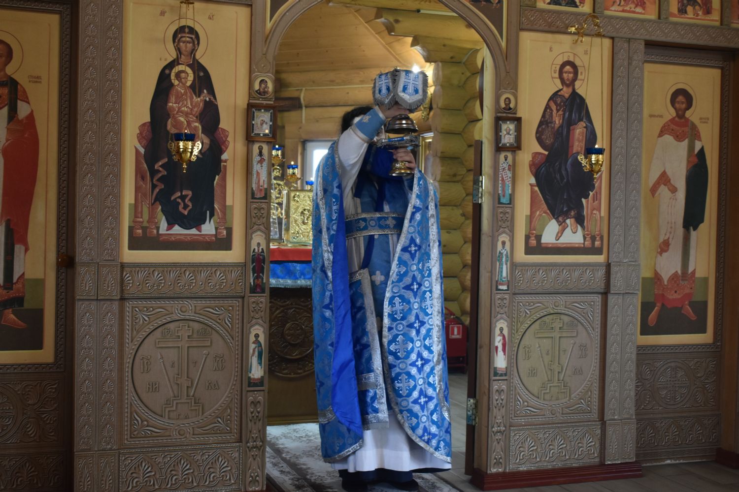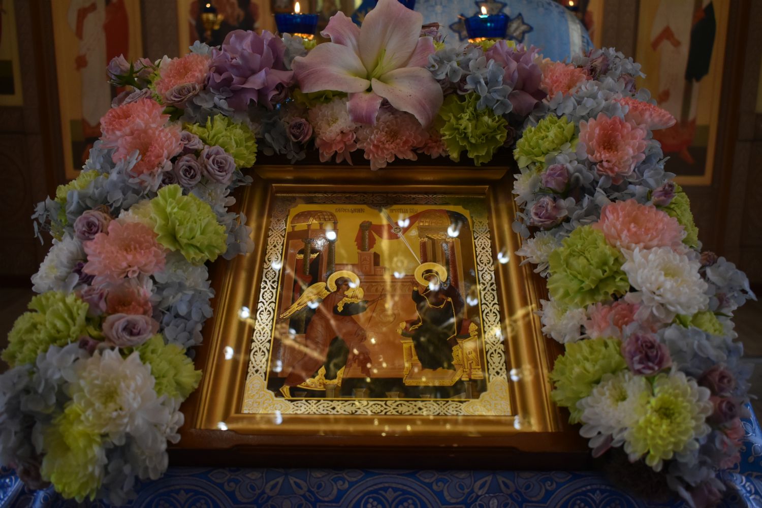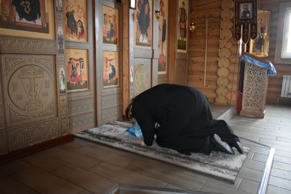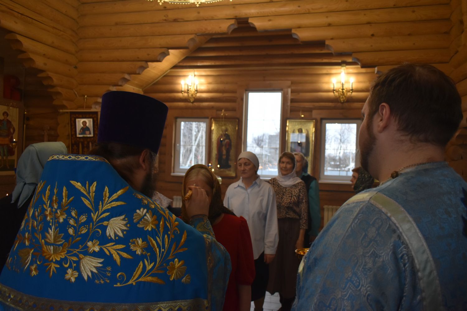 По завершении Литургии было совершено славление празднику Благовещения. Настоятель храма иерей Александр Сахненко произнёс проповедь о празднике Благовещения и его связи со страстной седмицей.