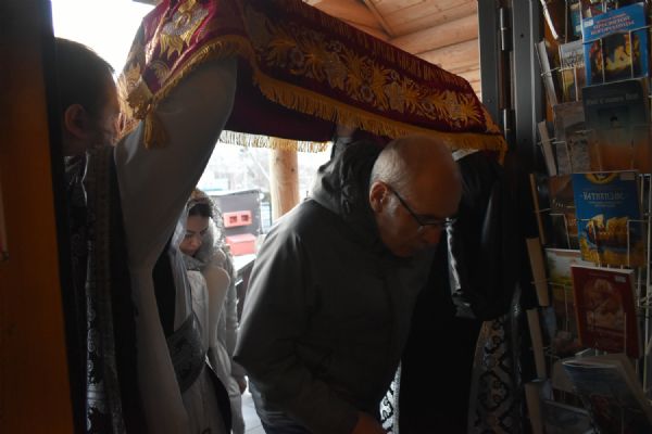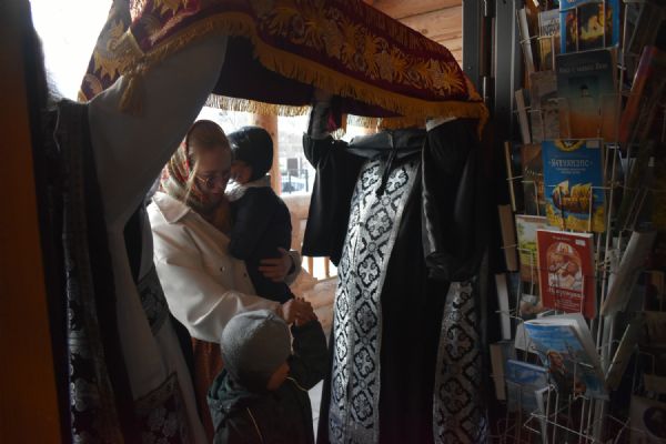 11 и 12 апреля священнослужители храма во имя святого великомученика Георгия Победоносца освящали крашеные яйца, пасхи и куличи, а также прочие праздничные снеди.