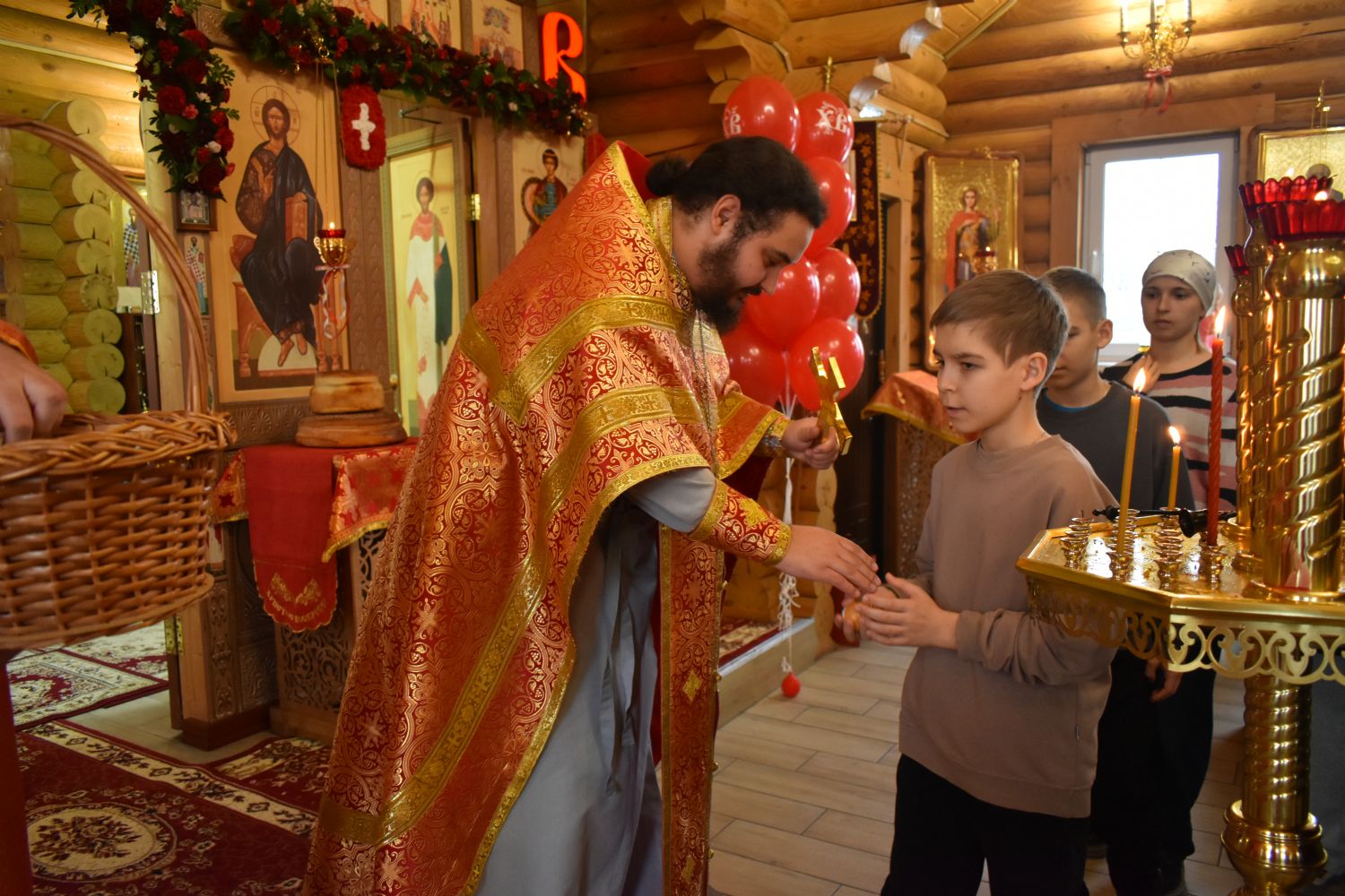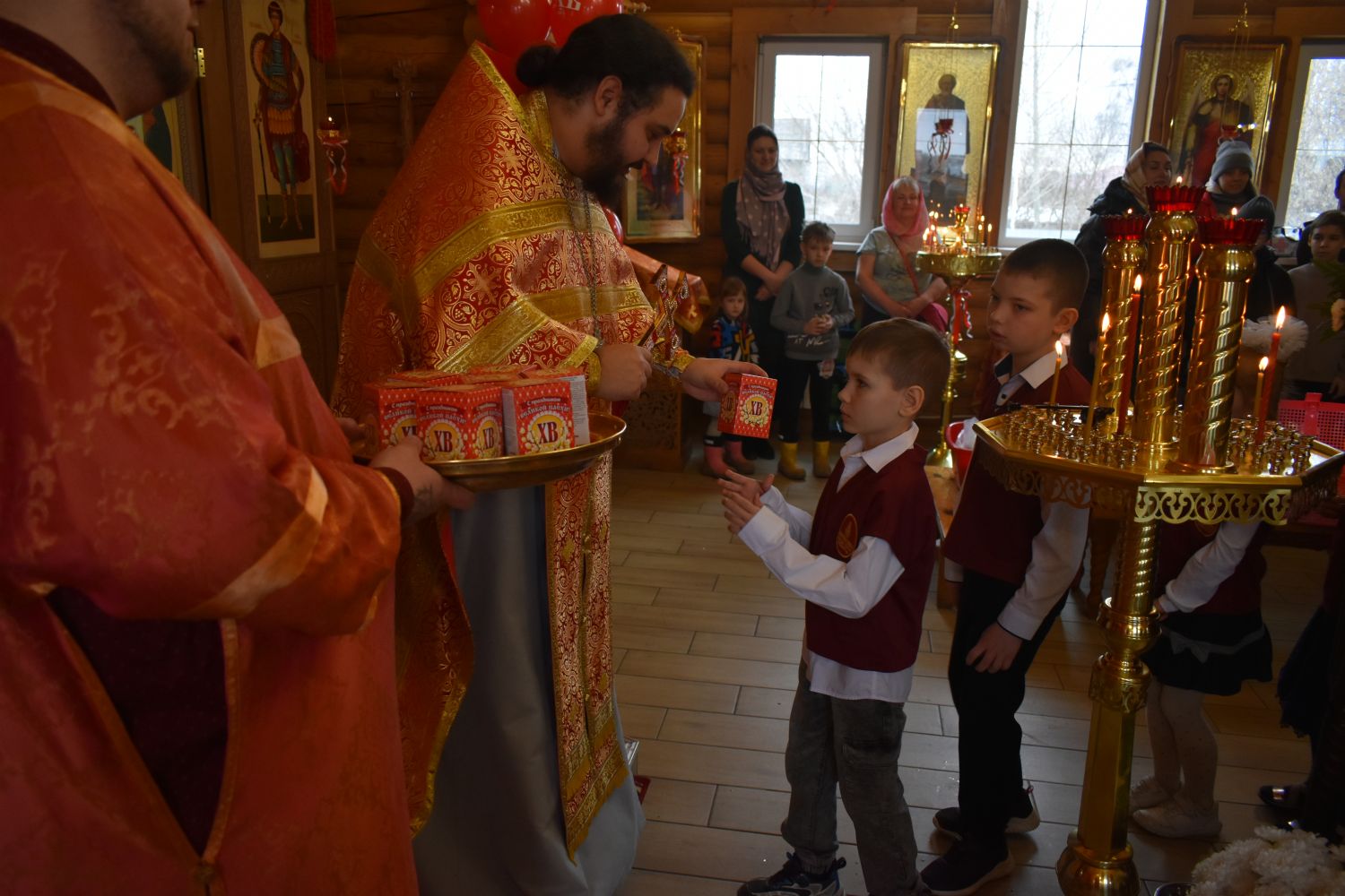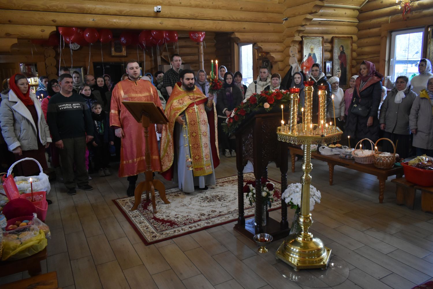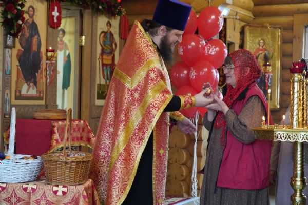 11 и 12 апреля священнослужители храма во имя святого великомученика Георгия Победоносца освящали крашеные яйца, пасхи и куличи, а также прочие праздничные снеди.