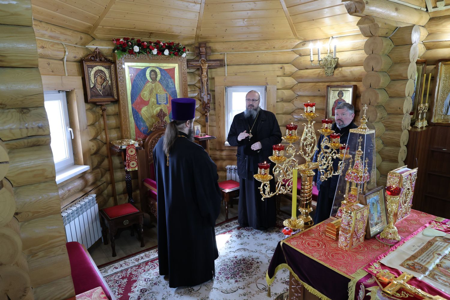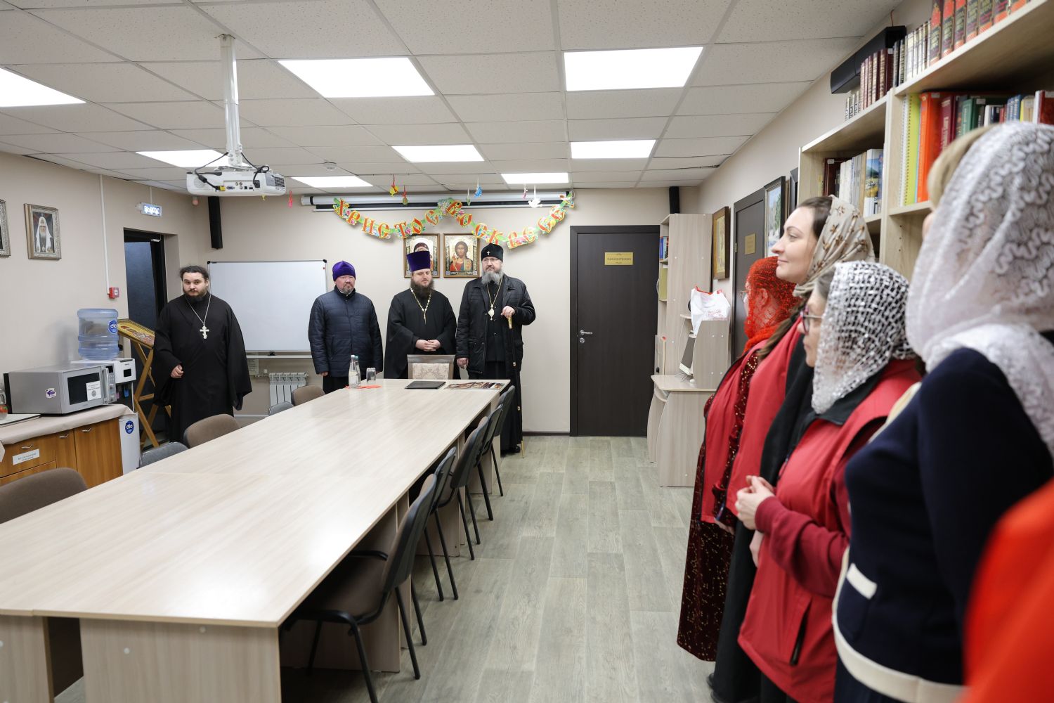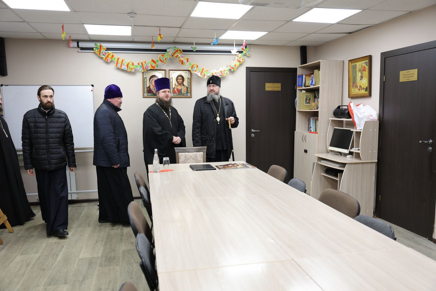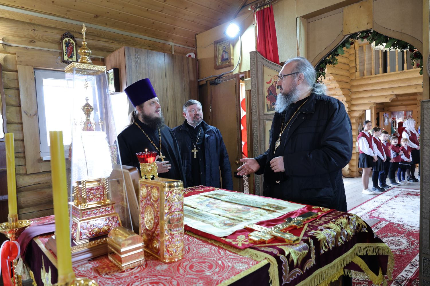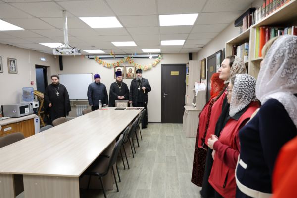 Митрополит Варфоломей осмотрел храмовое здание, территорию храма вместе со строящимся административным зданием, цокольный этаж храма. Экскурсию по храму для управляющего епархией проводил настоятель храма, отвечая на вопросы Владыки и рассказывая о строительстве храмового здания, особенностях хозяйственной деятельности и приходской жизни. Обзорно познакомил правящего архиерея с ходом озеленения прихрамового сквера и поделился планами благоустройства приходской территории.