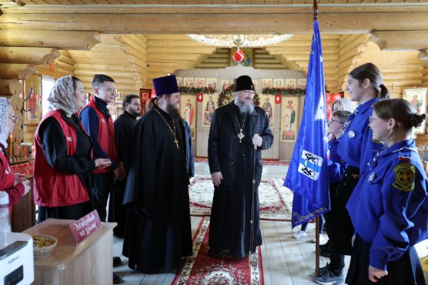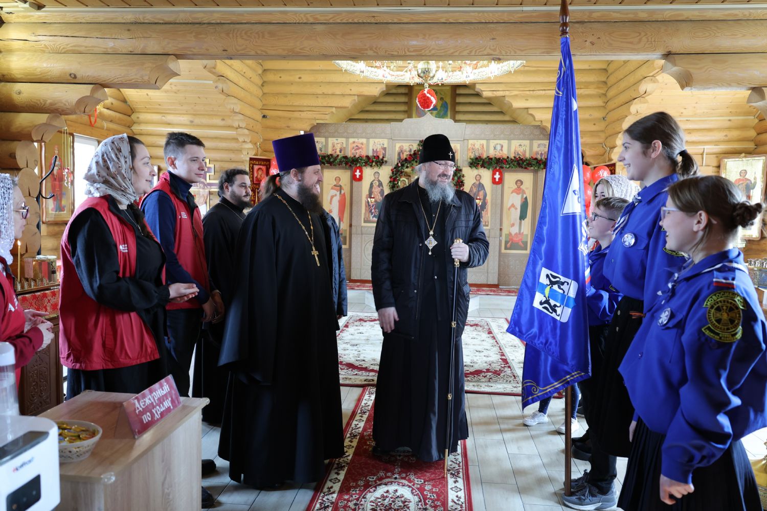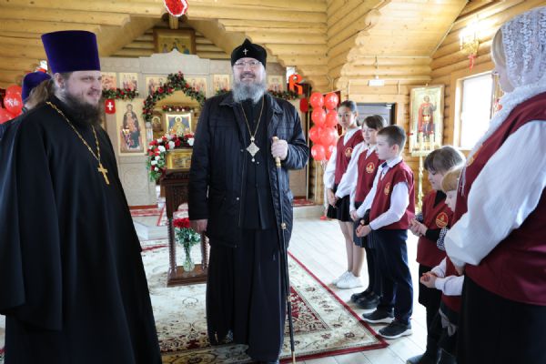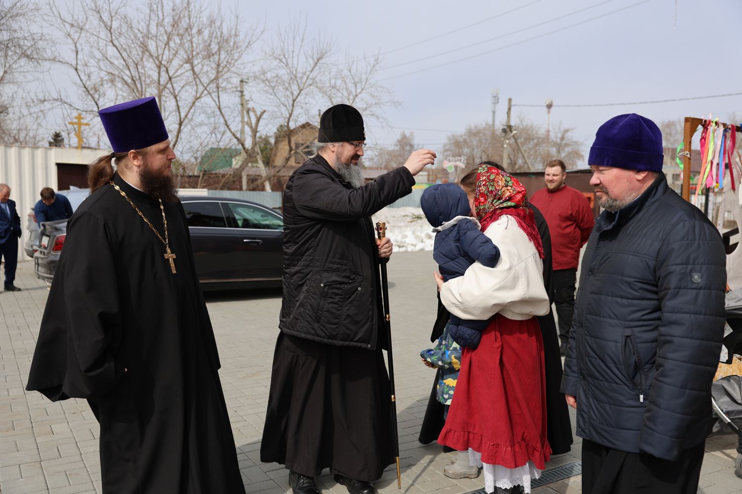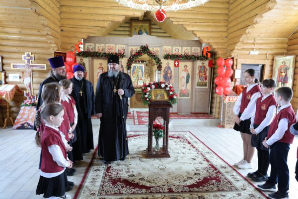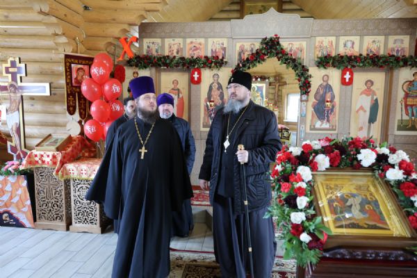 Главу Новосибирской митрополии встречал с цветами настоятель храма иерей Александр Сахненко, хлеб и соль преподнесла владыке на паперти храма заместитель церковной старосты Прихода Людмила Владимировна Лагутина. Правящего археиерея встречали клирики, приходские сотрудники и добровольцы, члены православного молодёжного клуба "Путь", члены Георгиевского отряда Братства Православных Следопытов и учащиеся детского отделения Воскресной школы Прихода.