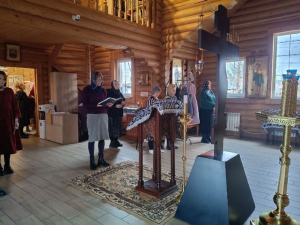 Богослужение совершили клирики храма, песнопения Страстной пятницы исполнили певчие клиросного ансамбля Прихода.
