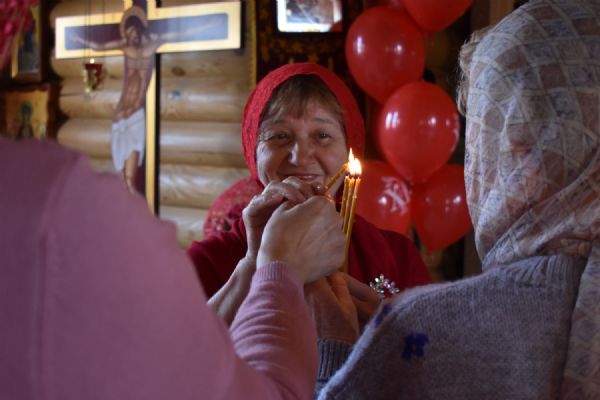 Перед началом вечернего пасхального богослужения настоятель Прихода иерей Александр Сахненко сообщил собравшимся на общую молитву верующим радостную новость и раздал прихожанам свечи с Благодатным огнём.